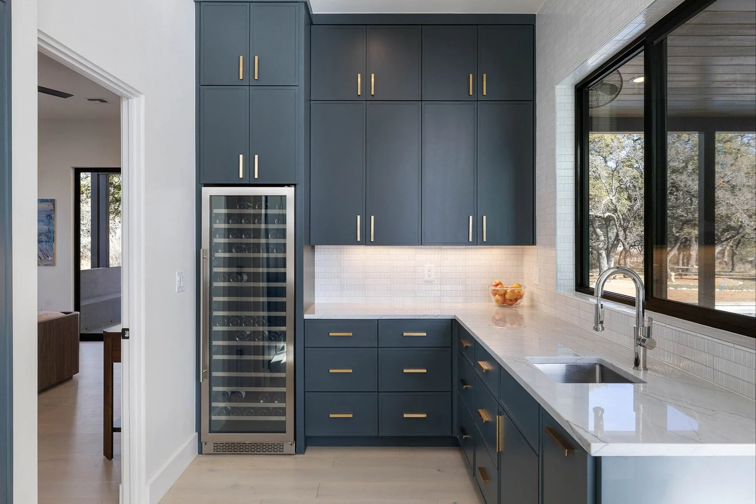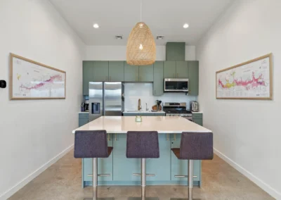 - Full-size kitchen with a large island and wine fridge