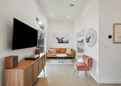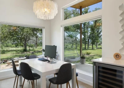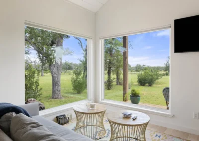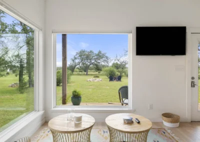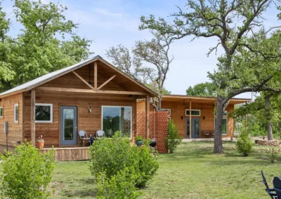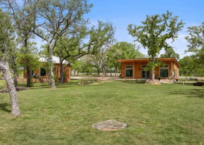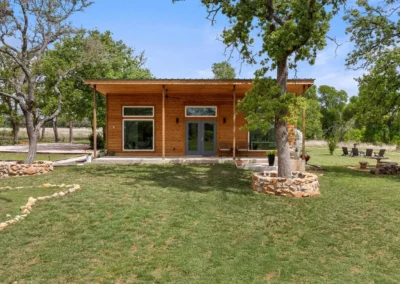 Discreetly positioned on the contiguous acreage to the main residence are 2 bespoke cabins encircled by post oaks: Casa Serena is 1000+/- sf of pure enchantment, this vibrant 2-bedroom casita comfortably sleeps 4 and offers a full-sized kitchen with eat in island, wine fridge, and lavish bath. Casa de la Paz – light filled and airy, this modern cabin defies its square footage by emoting a feeling of living in the outdoors with a 400+/- sf footprint it exudes fun and efficiency. An inviting front porch opens to this charming A-Frame featuring shiplap ceiling, spacious kitchen and full bath.