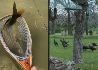 This offering is enhanced with access and ownership in a 5-acre tract of land stretching 850+/- along the Pedernales River, carved over ancient limestone shelves and canopied with mature cypress trees. Coupled with free ranging axis, whitetail, turkey, and rare exotics that commonly meander through heritage oaks, this acreage is truly an ideal setup for outdoor enthusiasts who wish to hunt, fish or simply enjoy nature at its finest.