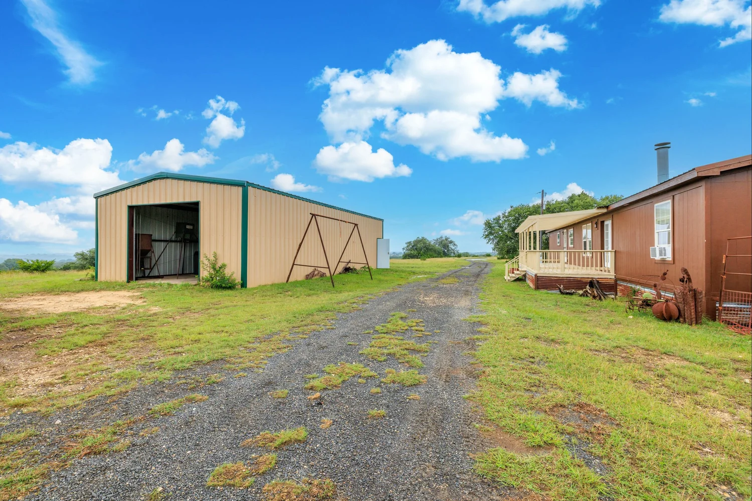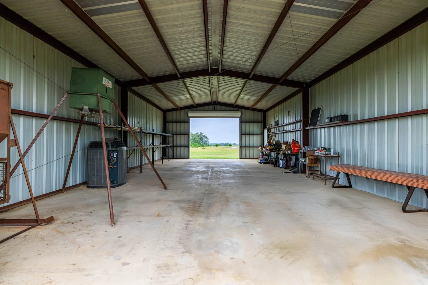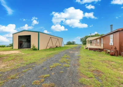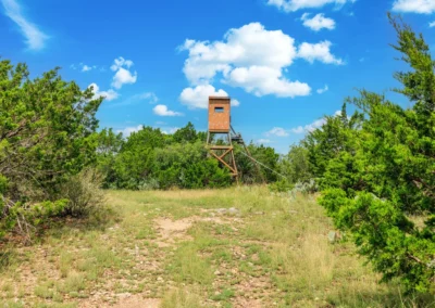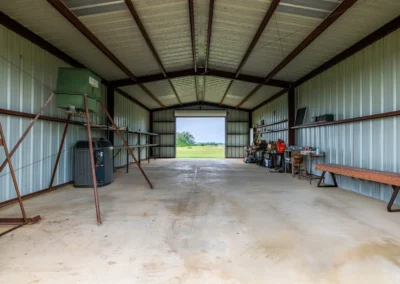 The metal barn sits on a 25×50 (1,250 SF) concrete slab and is adjacent to the ranch house. The barn has two (2) 10-foot roll-up doors, 1 standard door, and after-market shelving. The barn has plenty of space to store UTV’s, other large equipment, and tools. Nearby, there is also a small metal loafing shed that could be used for horse and other livestock shelter. There are also two (2) tower deer blinds and two (2) deer feeders that will convey in the sale.