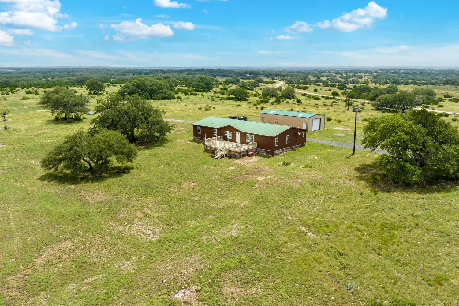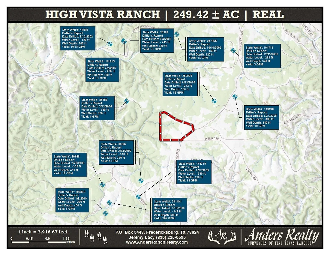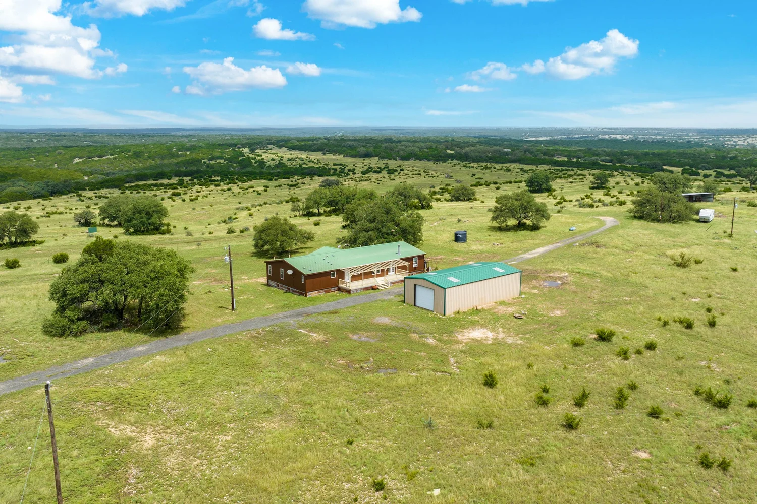 High Vista Ranch (249.42 ac) is an unrestricted, turn-key hunting property with excellent improvements in north-central Real County. The ranch features a comfortable 4-bedroom, 2.5-bath manufactured home with outstanding views, a 1,250 SF metal barn, and abundant native and exotic wildlife. The property is high-fenced along the north, west, and south boundaries, and has 1,980’ of frontage along the north line of Ranch Road 3235.