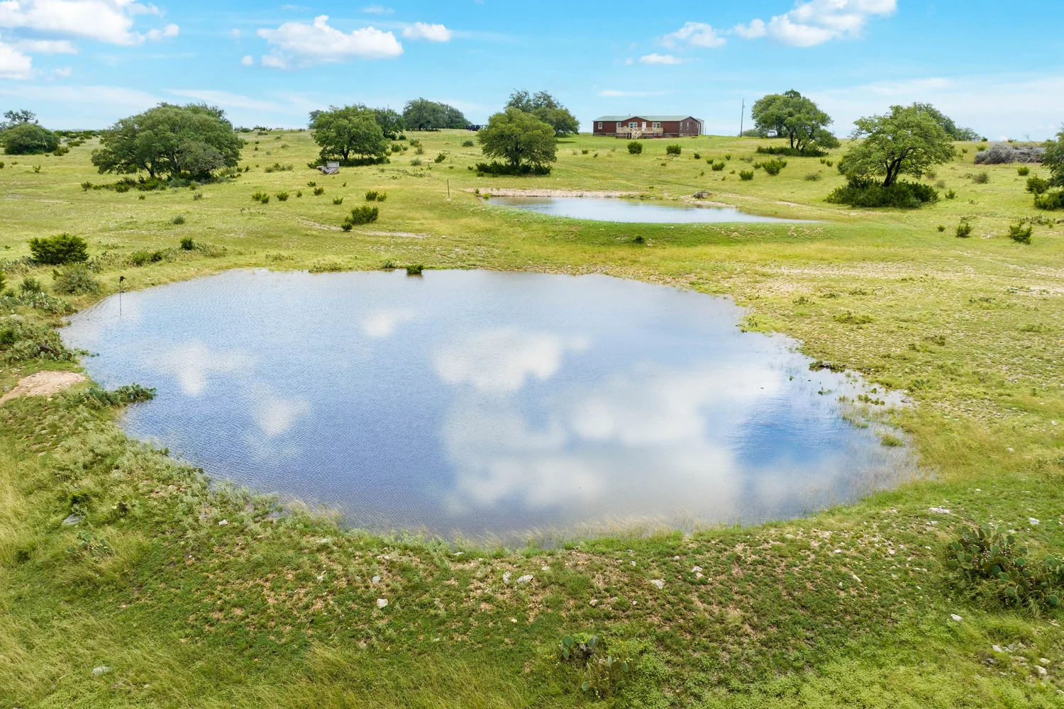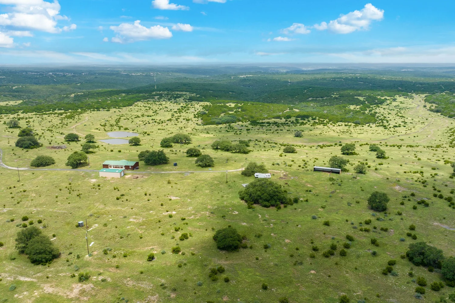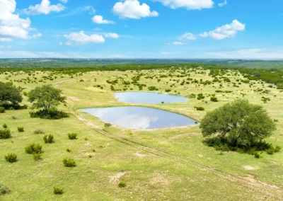 The dominant topo feature of this property is the high hill at 2,375 feet where the house sits, offering spectacular views to the west, southwest, and northwest. Looking out over the ranch, the elevation falls to a low of 2,240 feet at the bottom of a large draw, which sits in the middle of the ranch. If you’re looking for classic, serene Hill Country views where it is very, very quiet, this ranch offers that and more.