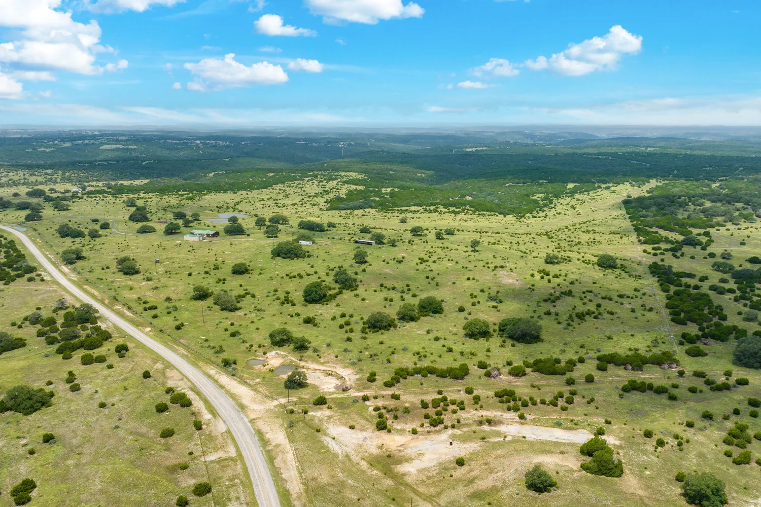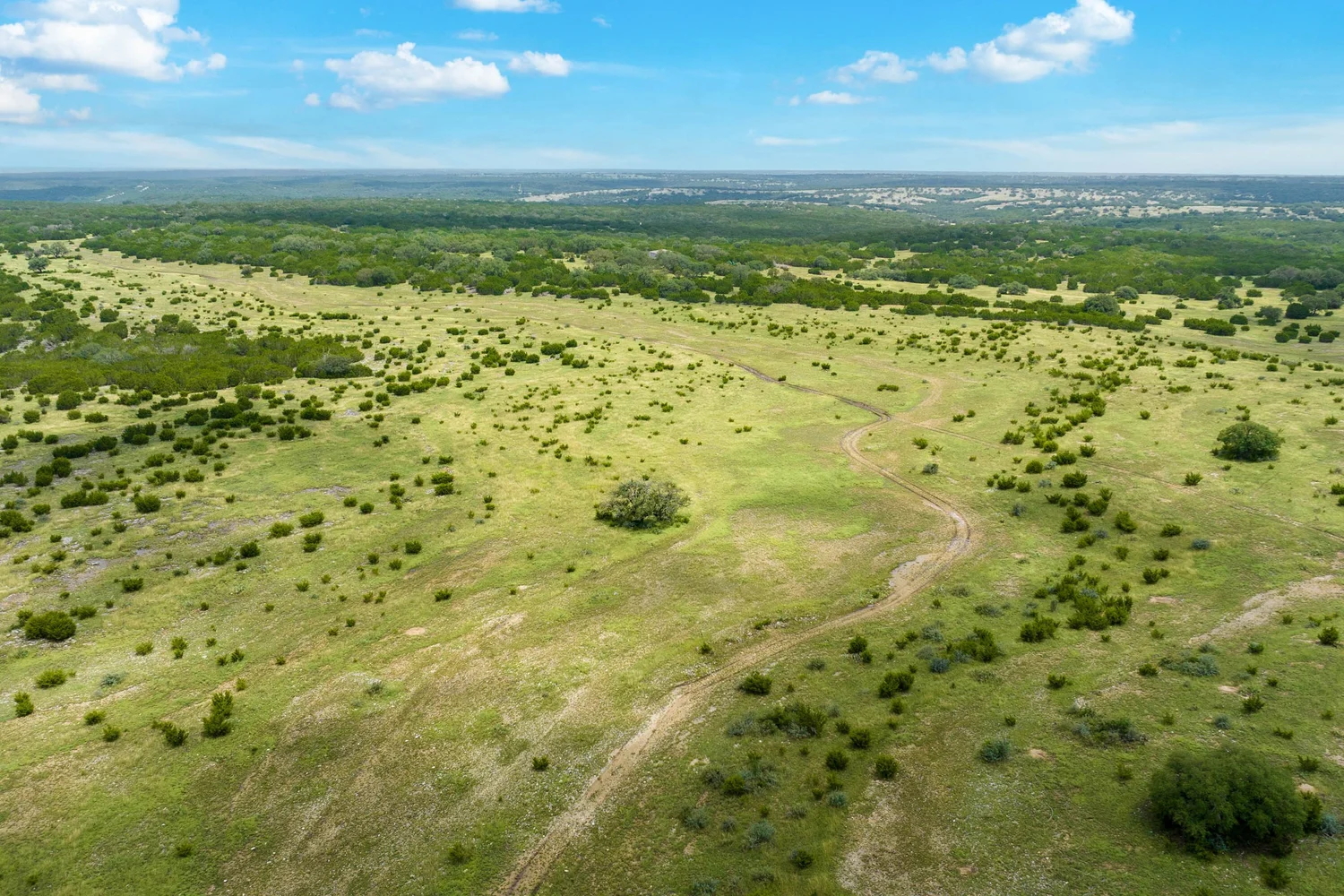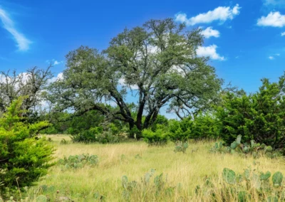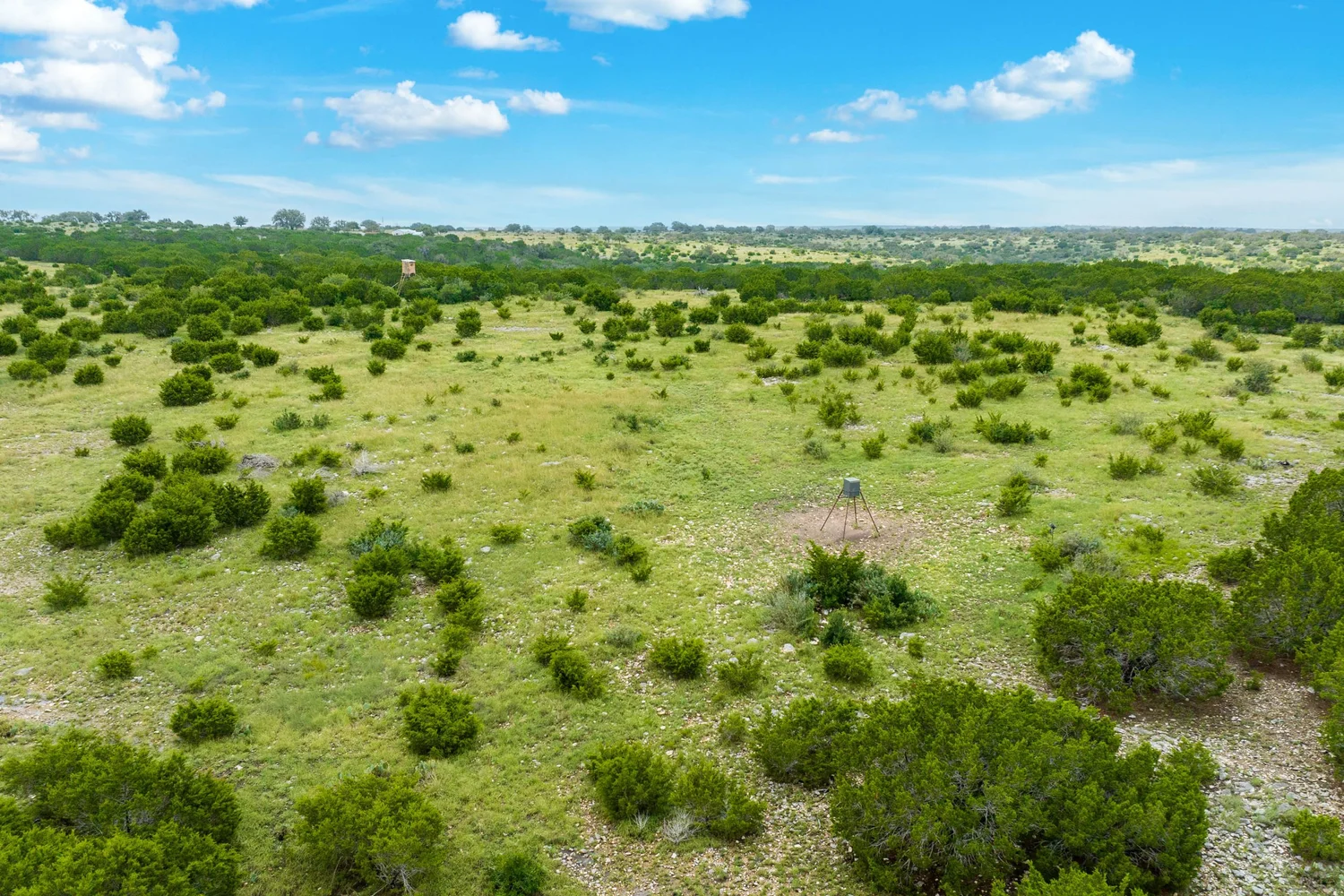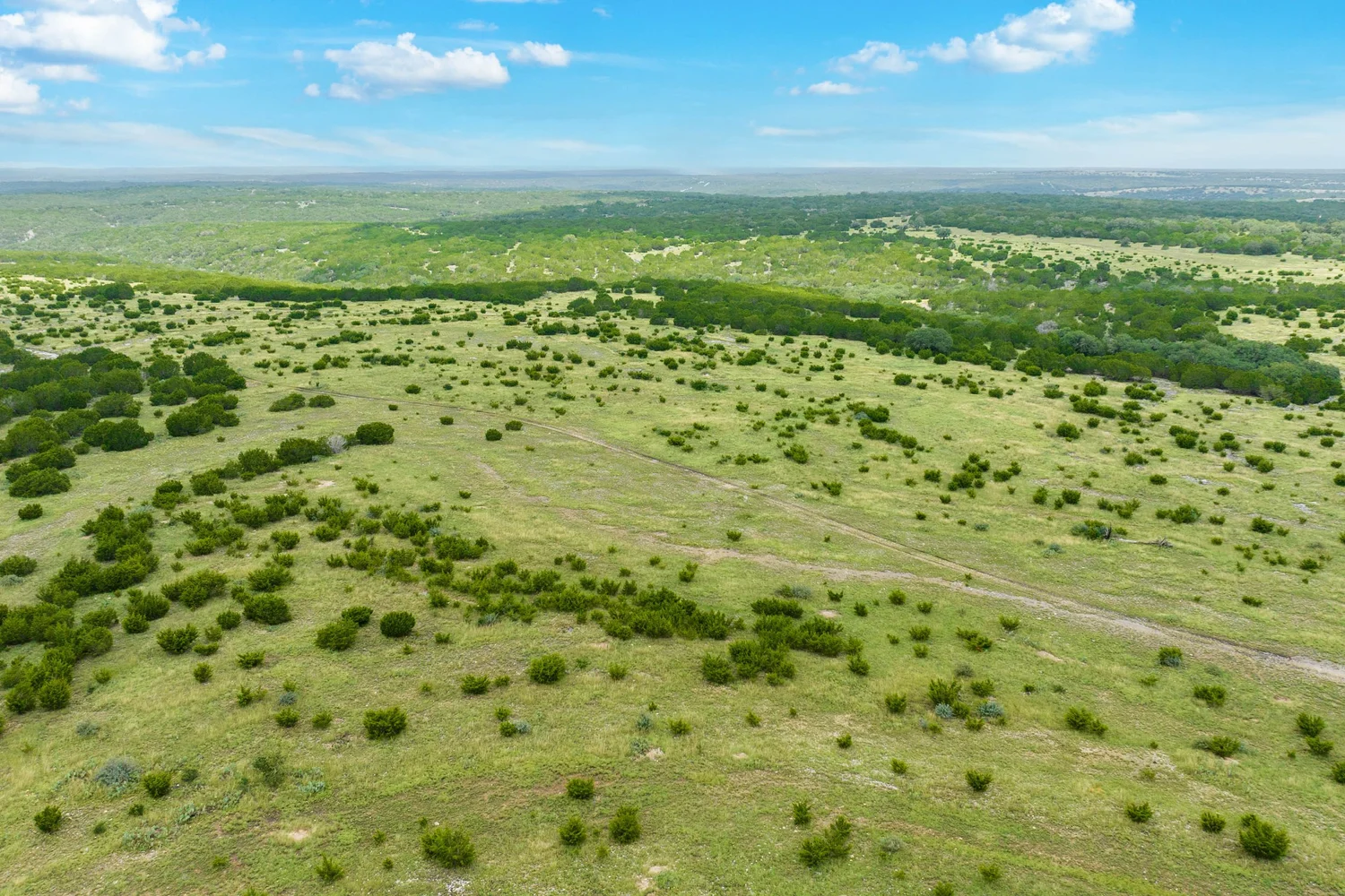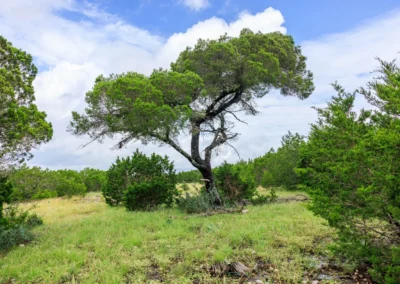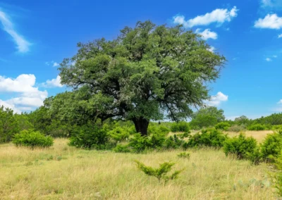 Roughly 100-ac or 40% of the property has been cleared of mature juniper, leaving scattered mature Live oak trees and native grasses. The remaining acreage varies from lightly to heavily wooded, with the thickest areas being along the large draw. Deeper soils may be found in eastern and higher elevation areas of the ranch.