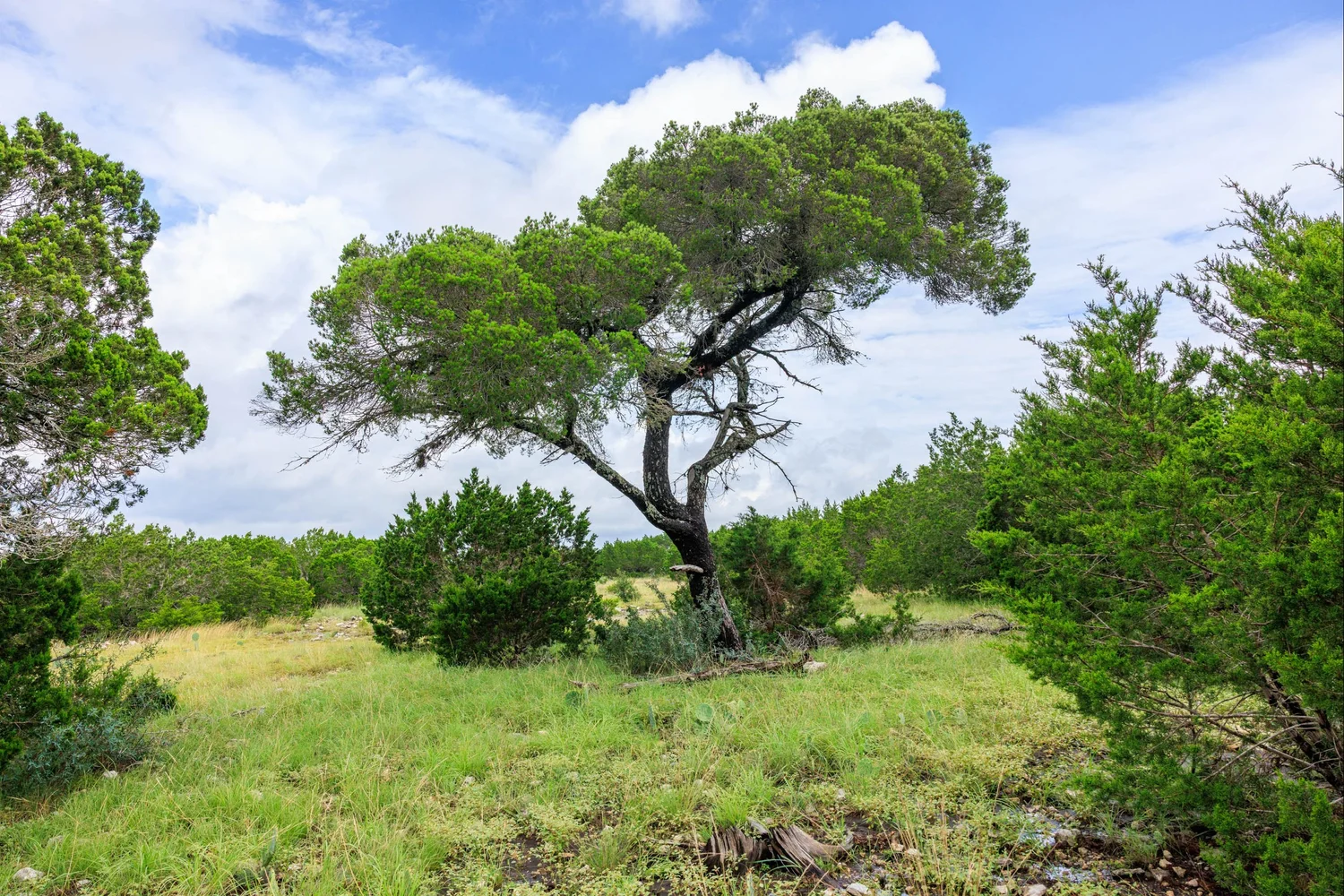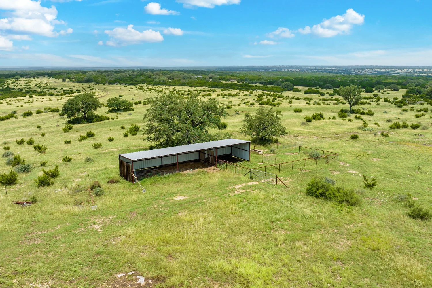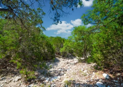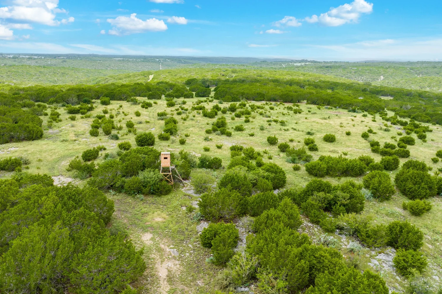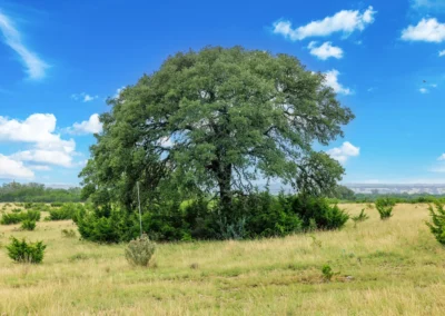 Roughly 100-ac or 40% of the property has been cleared of mature juniper, leaving scattered mature Live oak trees and native grasses. The remaining acreage varies from lightly to heavily wooded, with the thickest areas being along the large draw. Deeper soils may be found in eastern and higher elevation areas of the ranch.