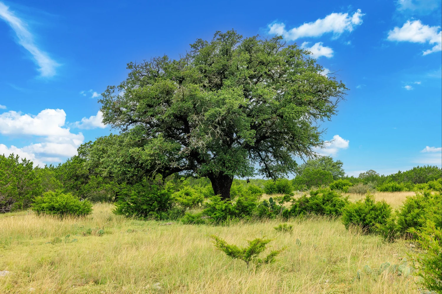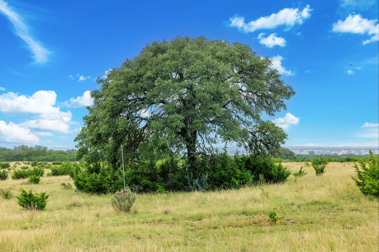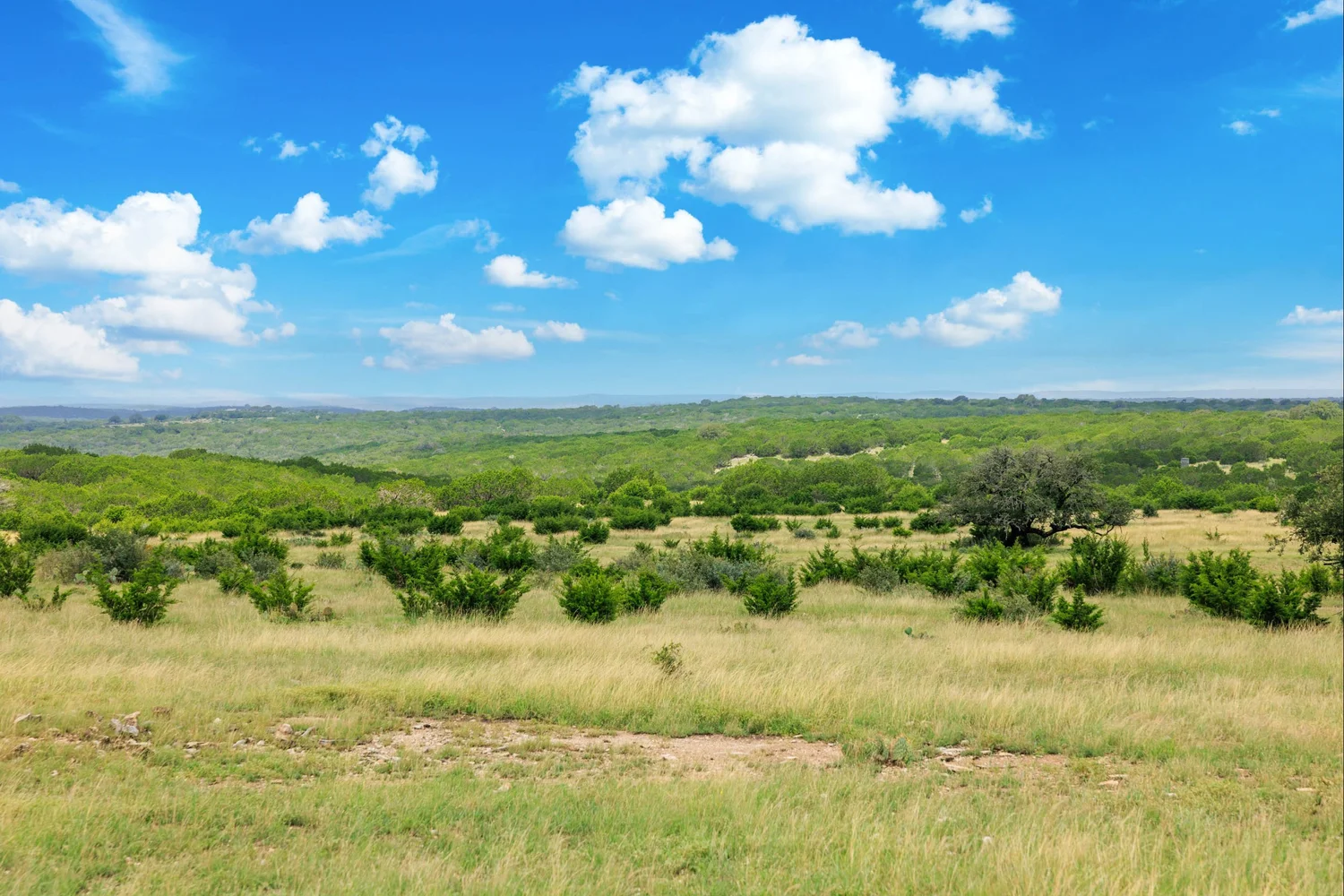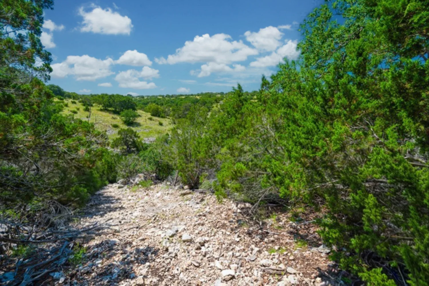 Roughly 100-ac or 40% of the property has been cleared of mature juniper, leaving scattered mature Live oak trees and native grasses. The remaining acreage varies from lightly to heavily wooded, with the thickest areas being along the large draw. Deeper soils may be found in eastern and higher elevation areas of the ranch.
