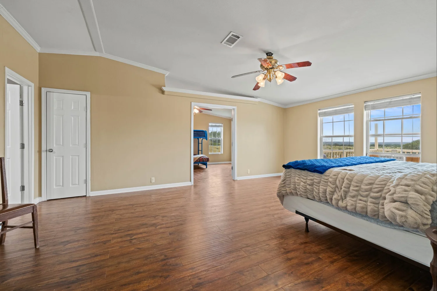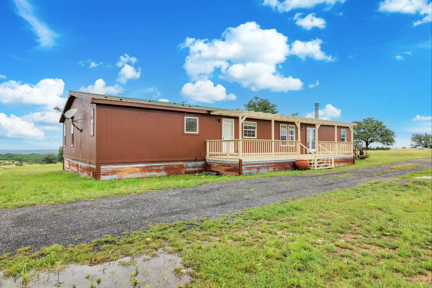 The ranch house is a comfortable 3,120 SF manufactured home with a large master suite, 3 guest bedrooms, 2.5 bathrooms, a large kitchen, and a utility room. The home has a 304 SF wooden deck on the front and a 480 SF wooden deck on the back overlooking the ranch. Both decks have recently been rebuilt and painted. The views from the back wooden deck are spectacular, especially in the evenings.