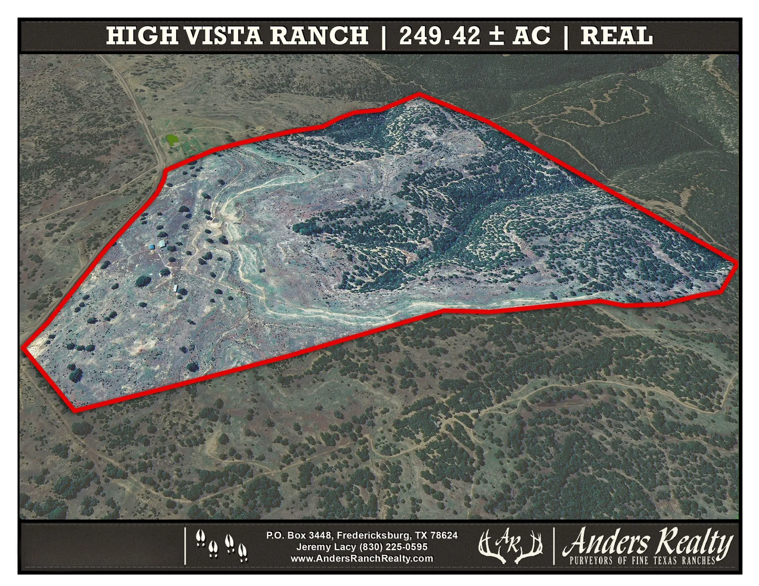 HIGH VISTA RANCH, as described herein (249.42± ac), is offered at $1,555,000 in Cash or at Terms acceptable solely at the discretion of the Seller.