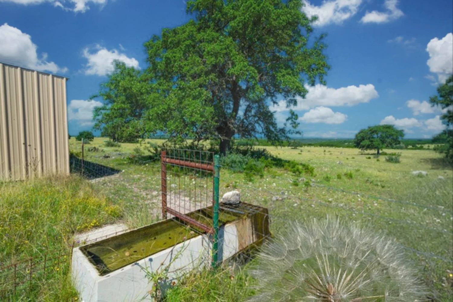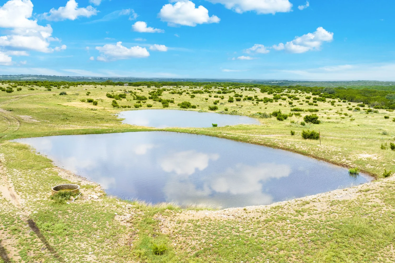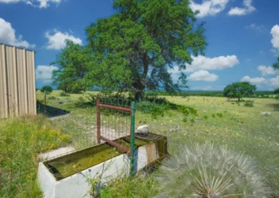 The water well that services the house yields 5 GPM (water at 260 feet, drilled to 460 feet. Water is pumped from the well to a storage tank which sits beside the house. Just below the house there is a small stock tank about 0.15 acres in size. The tank does hold water, but it will go dry during drought periods. There is an unnamed, seasonal creek that originates in roughly the center of the ranch and flows west, forming a deep draw.