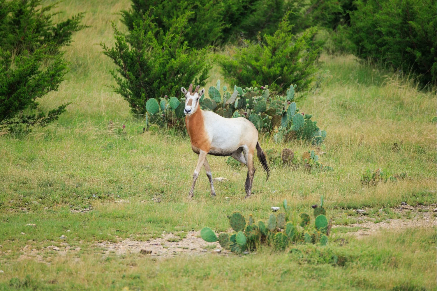The habitat consists of a rolling, oak and juniper dominated savannah, interspersed with other native tree, brush, and grass species such as Texas persimmon, Shinnery oak, Mesquite, Cedar elm, Little bluestem, and even a few scattered Pinyon pines.