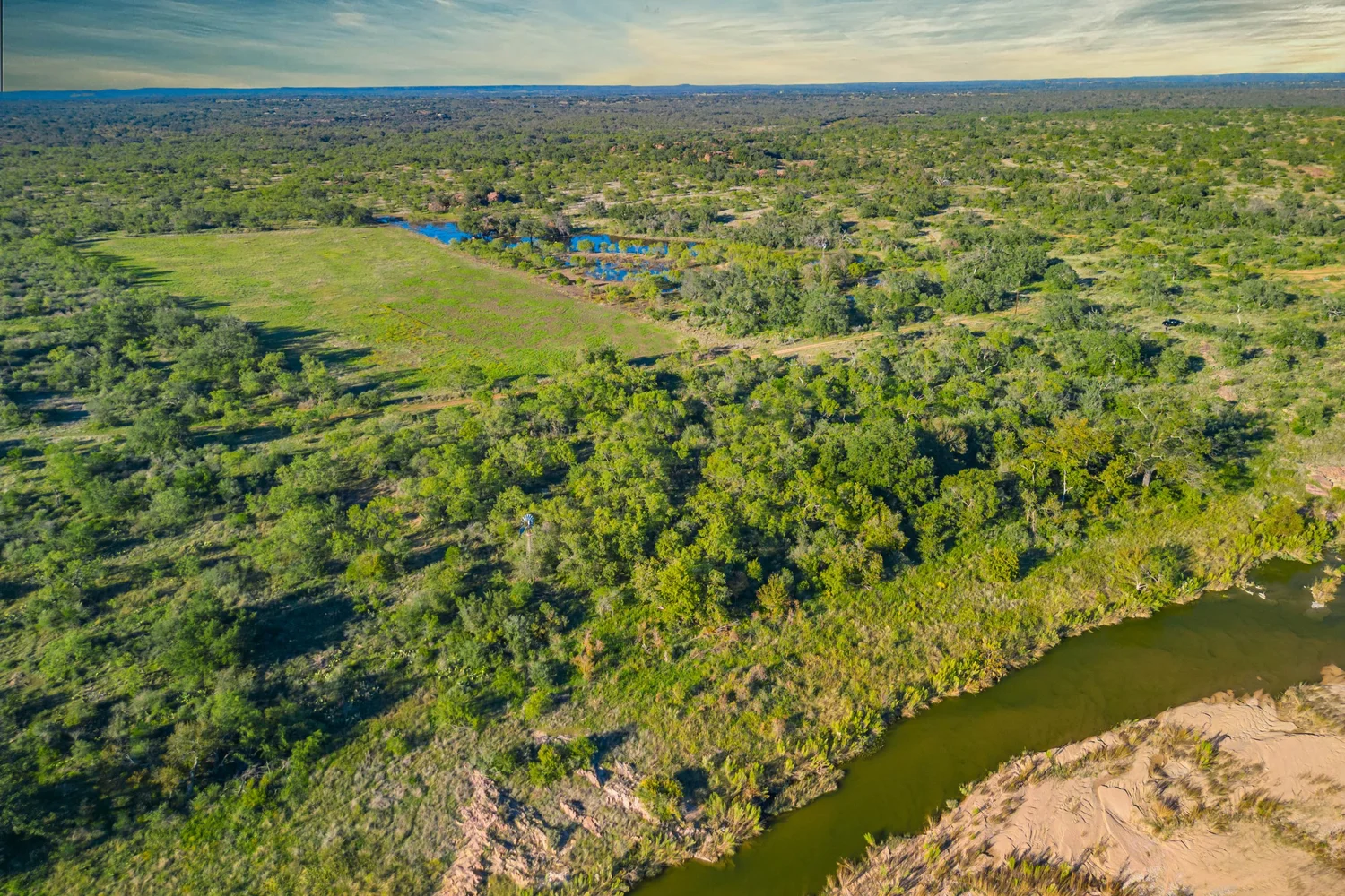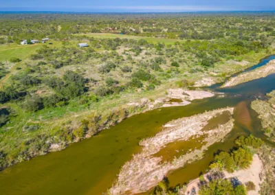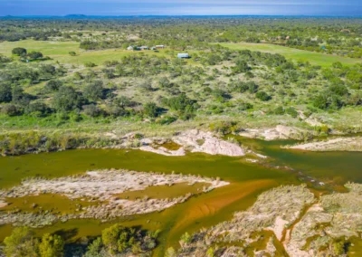 The elevation generally slopes from north to south and ranges from 1,070’ along the Llano River, up to 1,120’ in the northern pasture areas of the property. The homestead, which sits on the La Hacienda Rio tract, was strategically placed on an isolated hill that is 1,135’ at its peak. Soils consist primarily of deep, fine and course sandy loam throughout the property, which are ideal for wildlife food plot development.