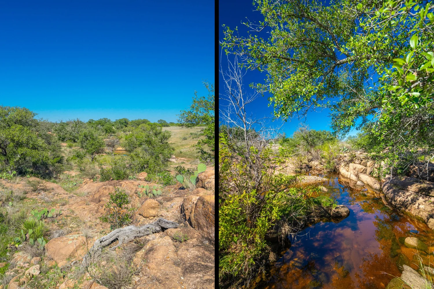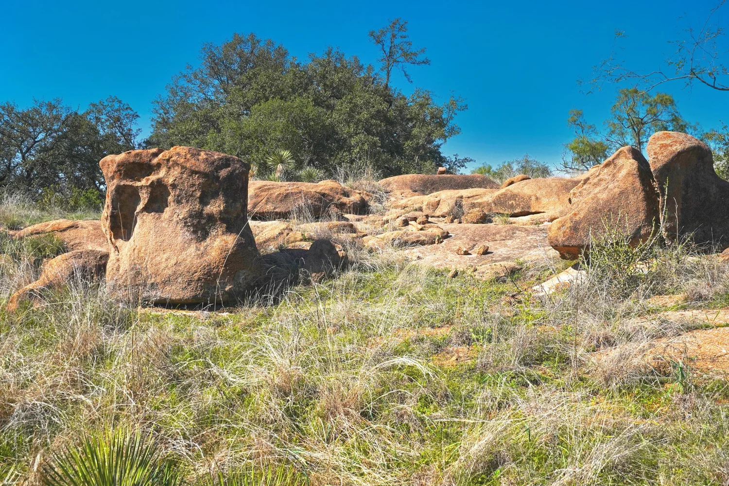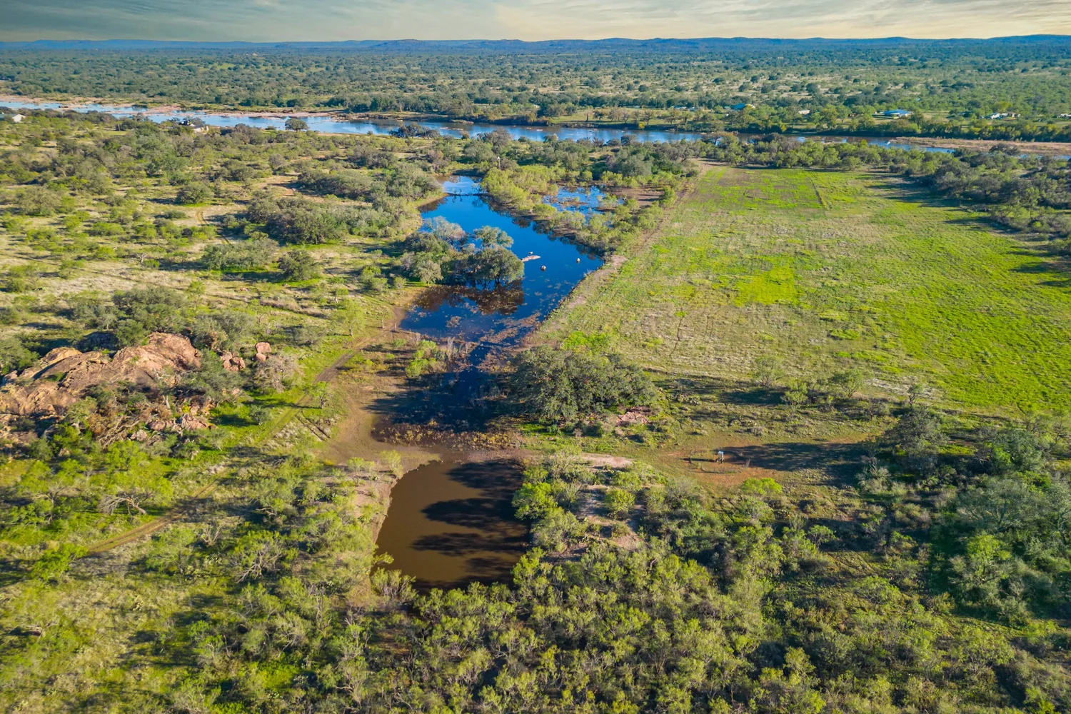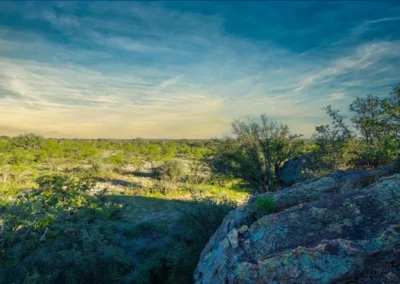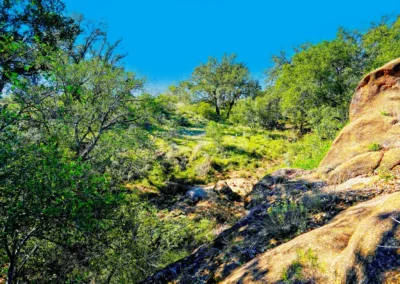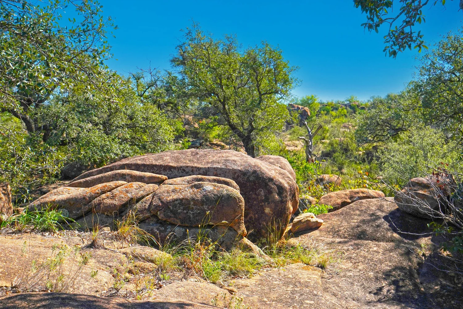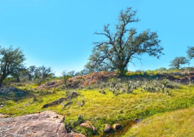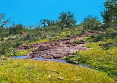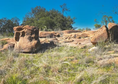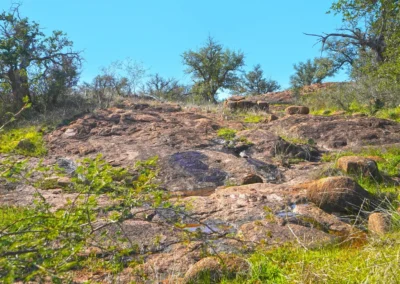 There are striking granite rock formations throughout the ranch, the most notable being a 25’ high monolith that sits on the Rancho El Aquila tract. With a basal area of about ½ acre, this rock structure is an easy climb and offers fantastic views of the surrounding Llano River valley.