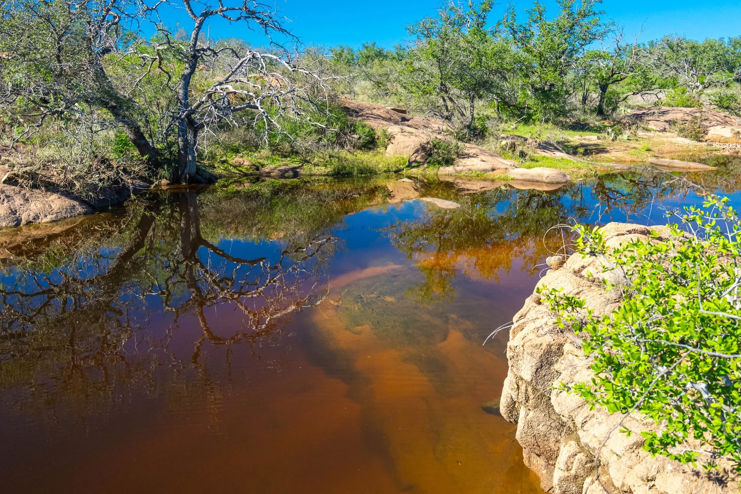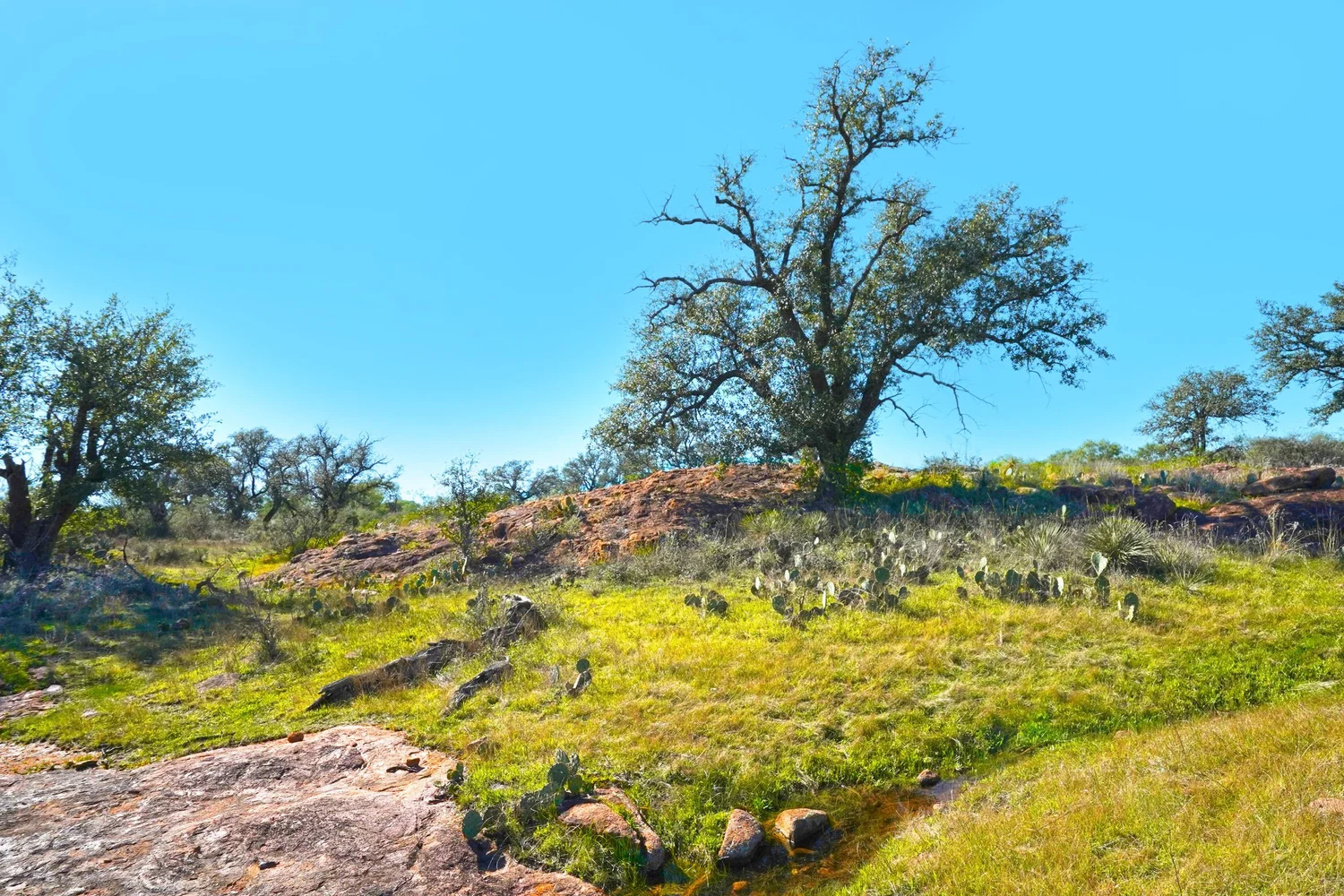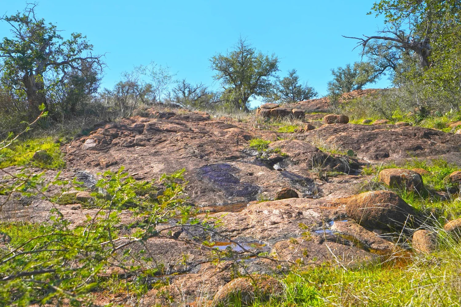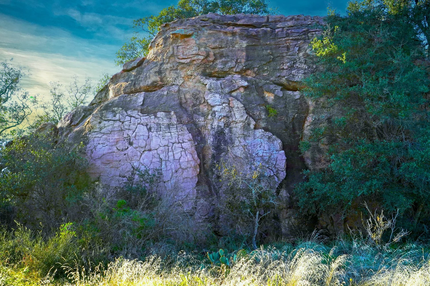 There are striking granite rock formations throughout the ranch, the most notable being a 25’ high monolith that sits on the Rancho El Aquila tract. With a basal area of about ½ acre, this rock structure is an easy climb and offers fantastic views of the surrounding Llano River valley.