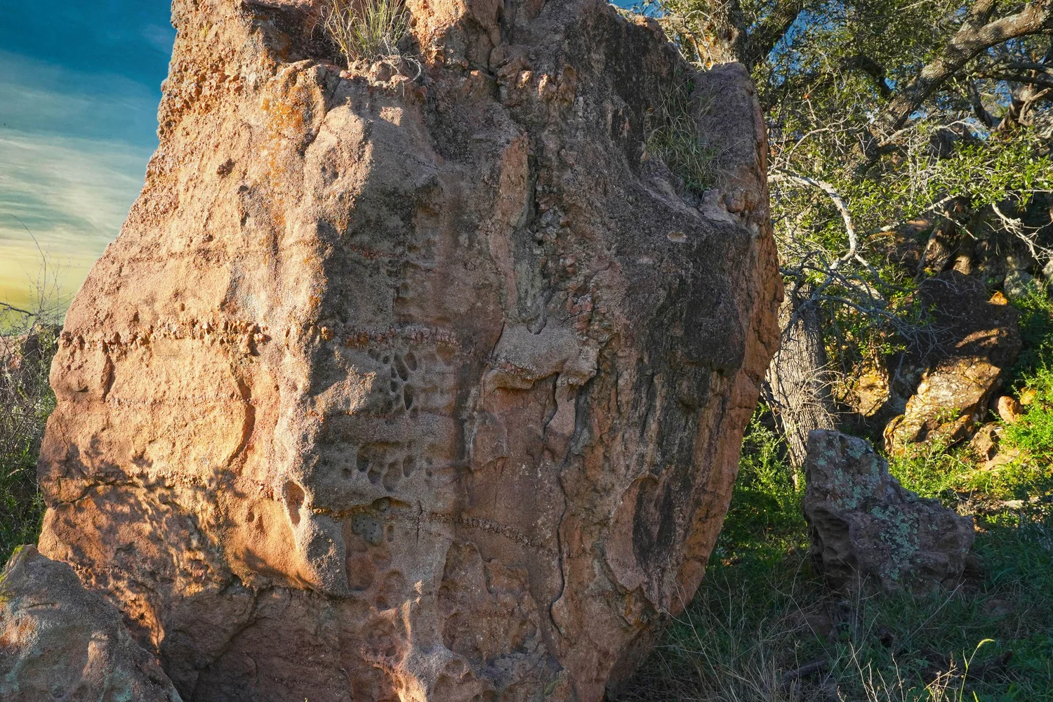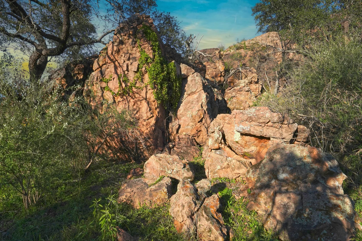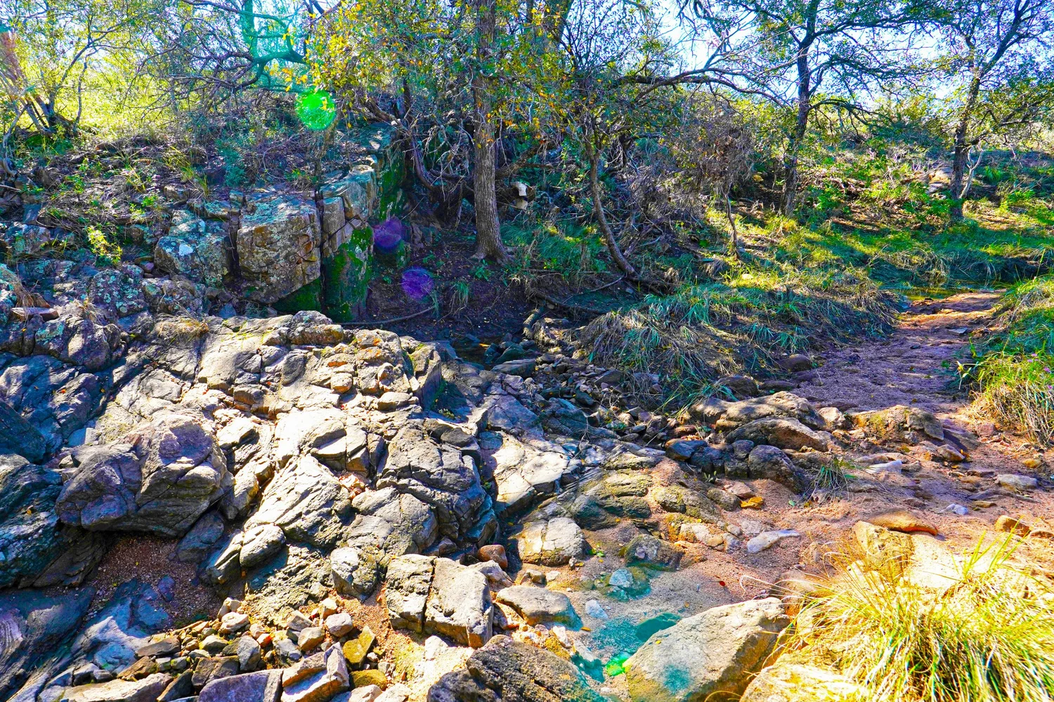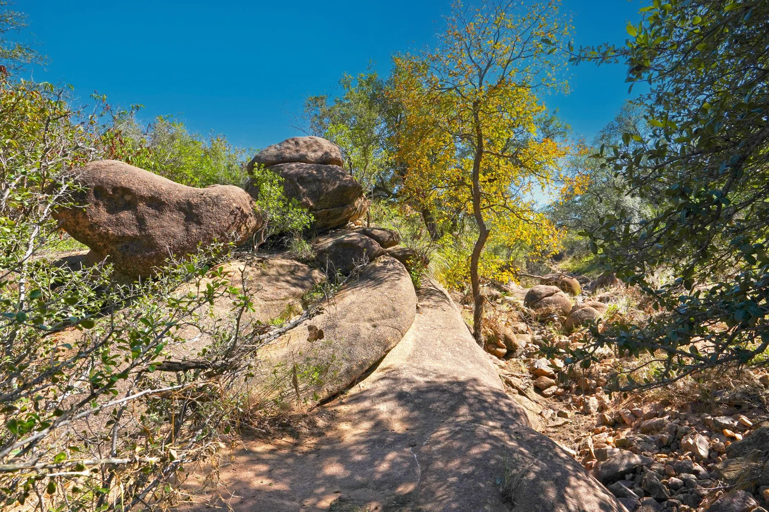 There are striking granite rock formations throughout the ranch, the most notable being a 25’ high monolith that sits on the Rancho El Aquila tract. With a basal area of about ½ acre, this rock structure is an easy climb and offers fantastic views of the surrounding Llano River valley.