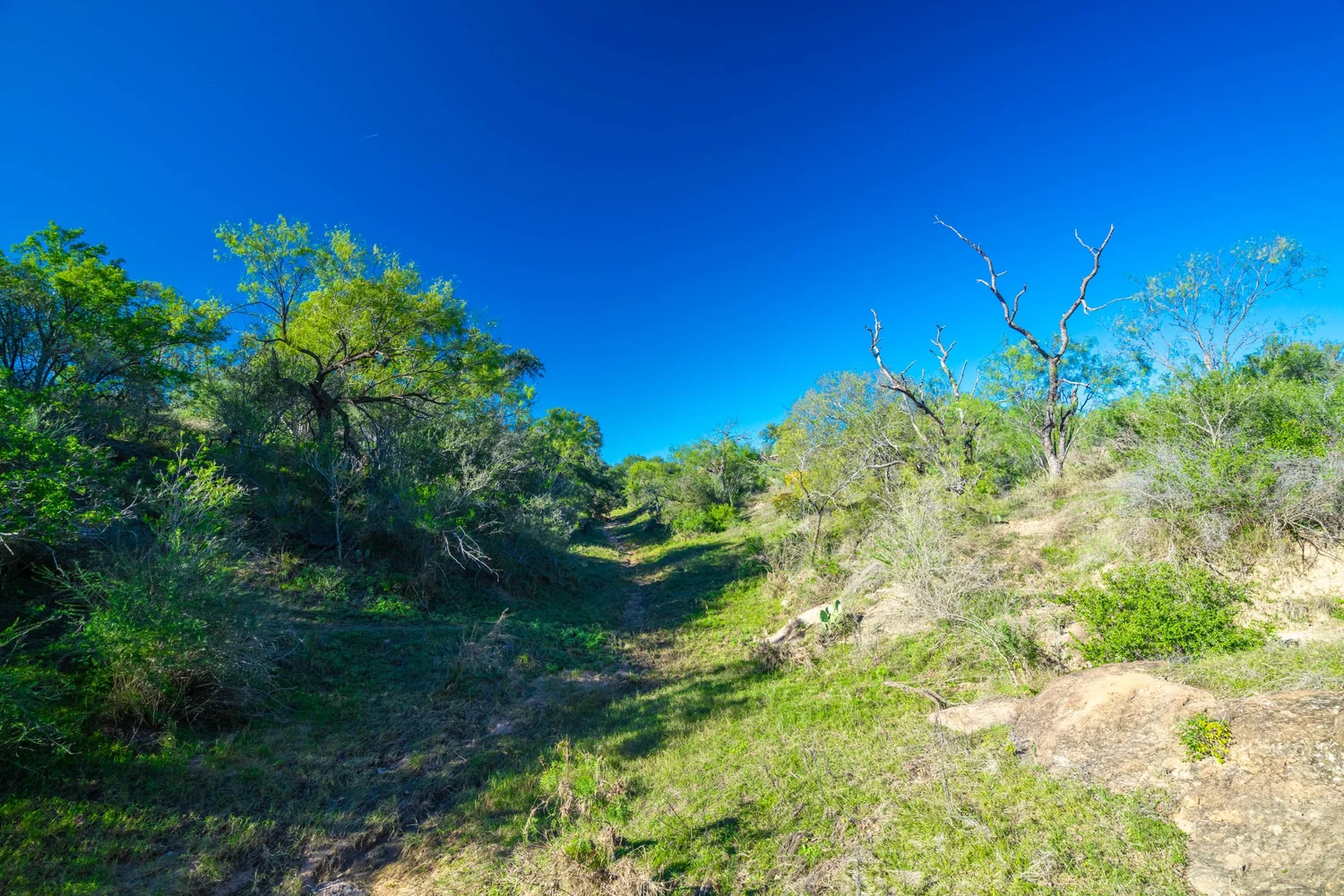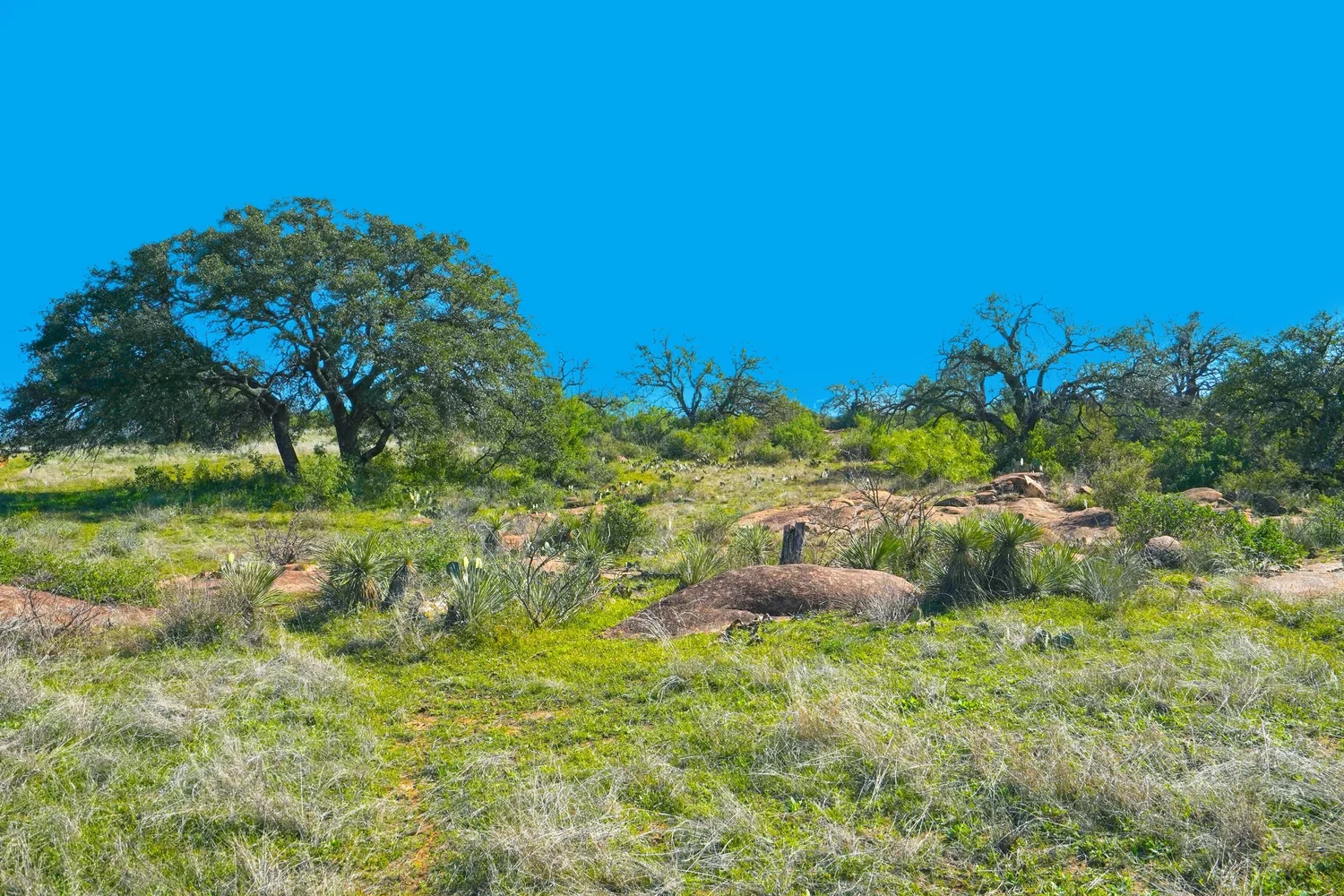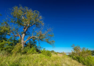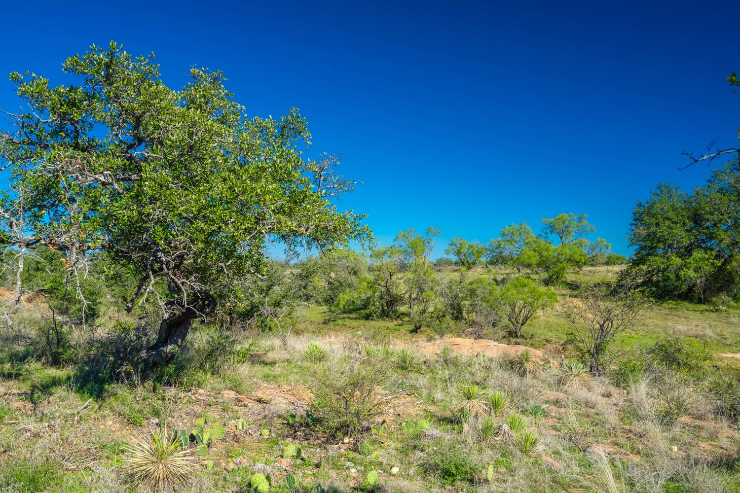 The habitat throughout the property consists of an undulating, oak dominated savannah, interspersed with other native tree, brush, and grass species such as Texas persimmon, Mesquite, Cedar elm, Black hickory, Beebrush, and Little bluestem. Live oak is the primary and most visible oak species, with healthy amounts of Post oak, Blackjack oak, and Shinnery oak also present.