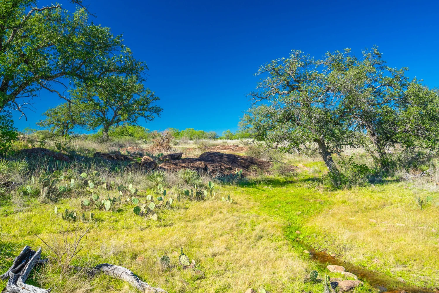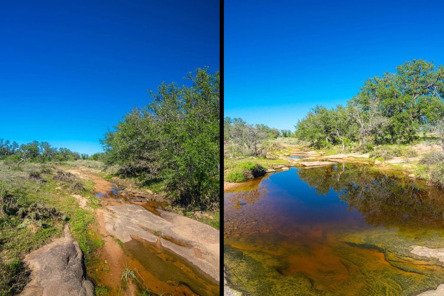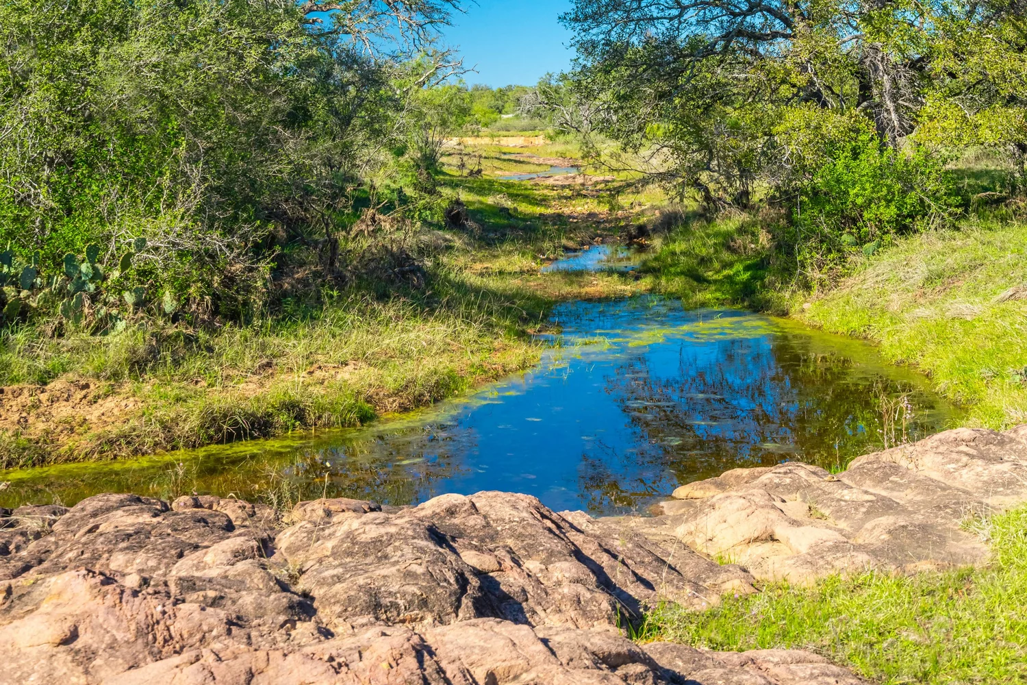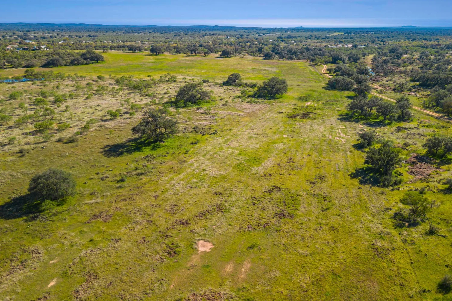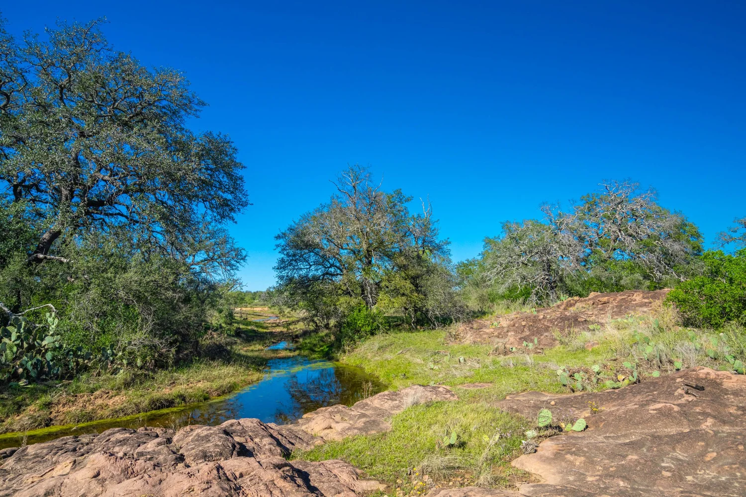 There is a secondary creek, lined with intricate granite outcroppings, that enters this portion of the property along the west boundary, then turns south and eventually flows into the Llano River. Along this 4,420’ creek, there are three (3) concrete “spreader” dams that back up water seasonally. The largest is a 0.30 pond on the upper end of the drainage. There is also a 0.25 ac pond with an earthen dam near the west fence line. There are no water wells on this tract.