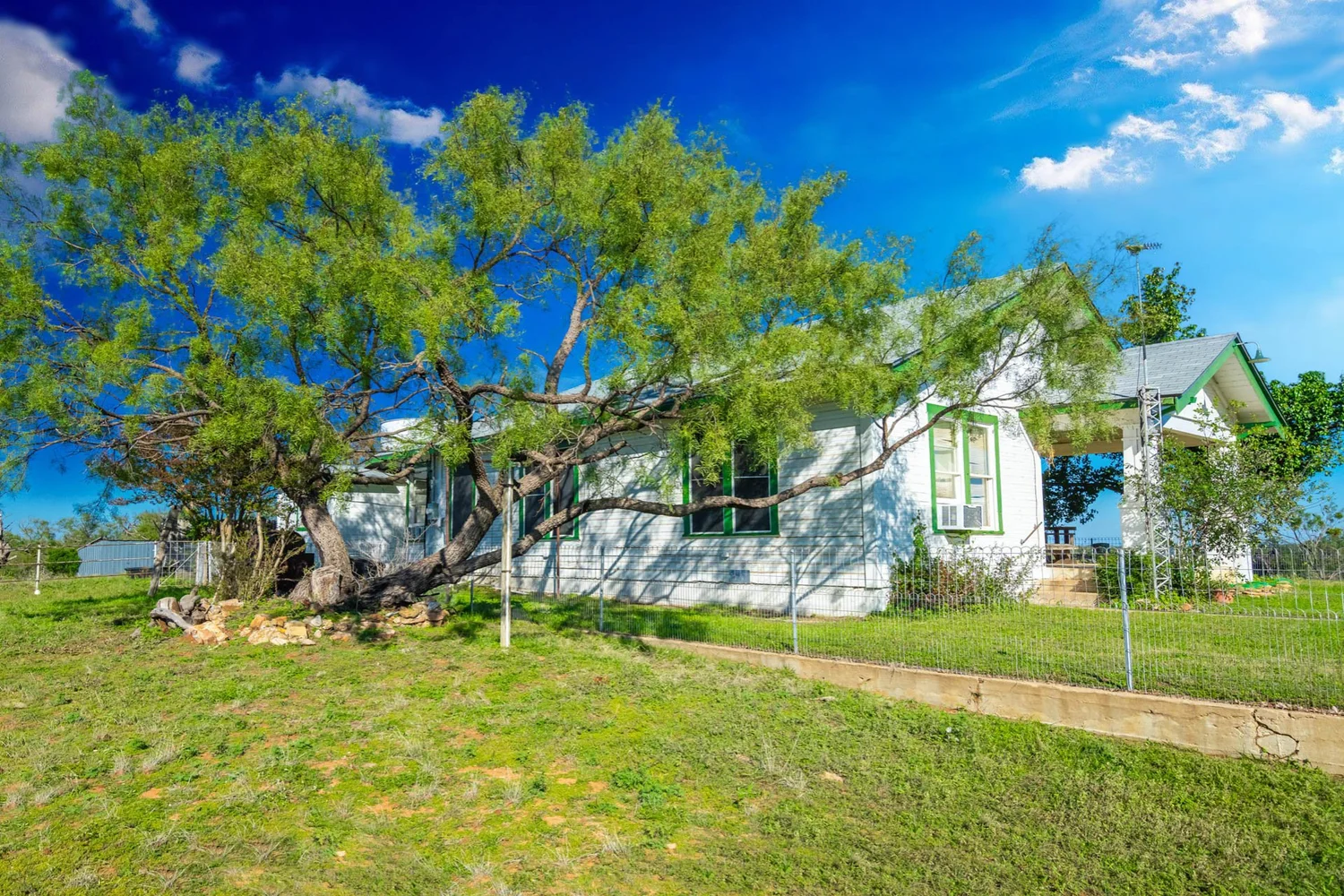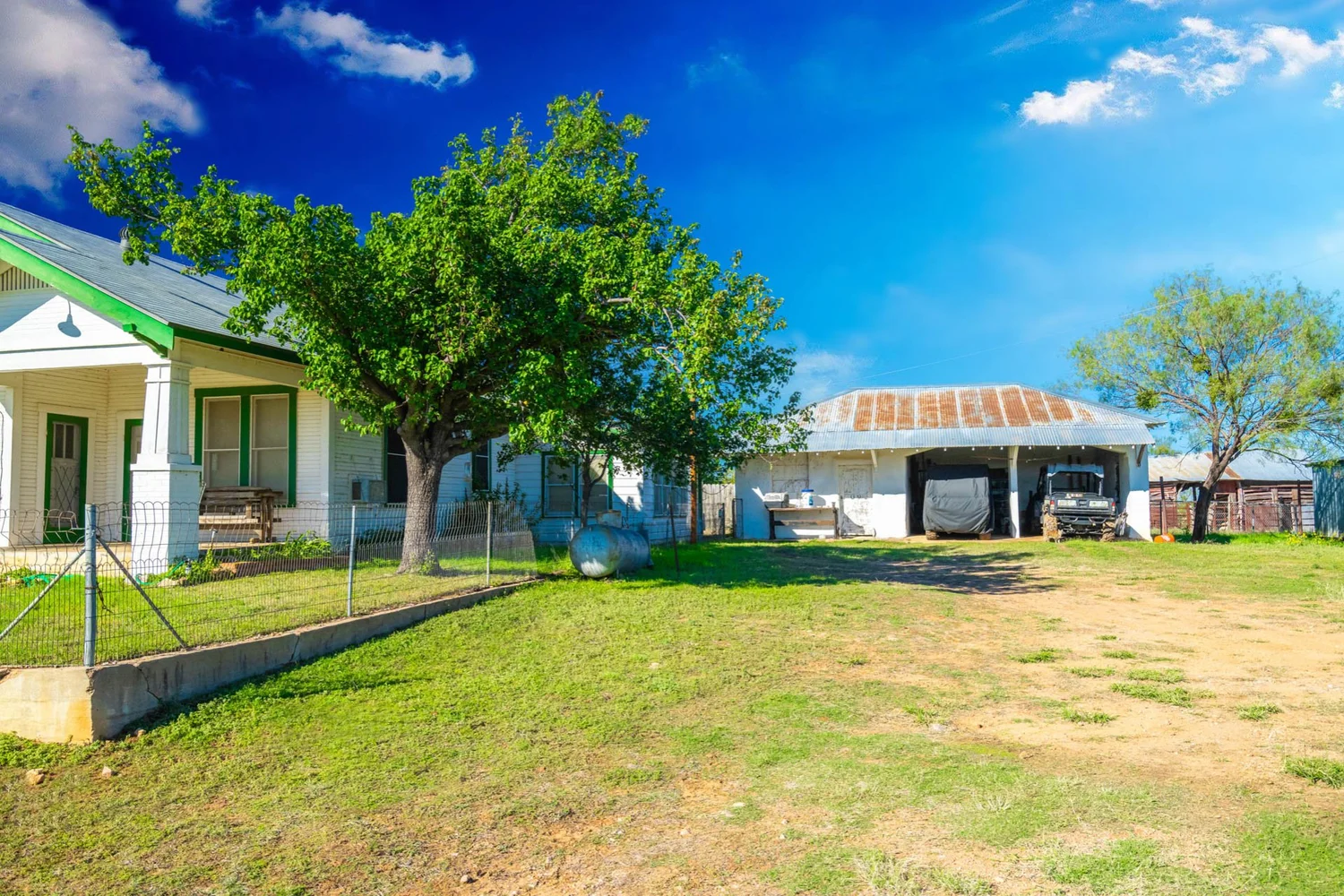 The original homestead house, built in 1923, still stands on the La Hacienda Rio tract and is still in use by the landowner. This 3-bedroom, 2-bath bungalow-style home has 1,706 SqFt of living space and a 154 SqFt covered front porch. A 2-car garage with a workshop/storage space sits adjacent to the house.