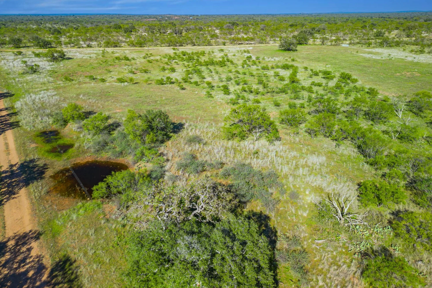 There are three (3) ponds that lie in a north-south chain, almost in the center of this section of the property. The first is a small 0.15 ac pond, then a larger 1.50 ac pond, and finally a 0.50 ac pond. Sitting just south of the last pond is a windmill water well. There are no secondary creeks on this part of the ranch.