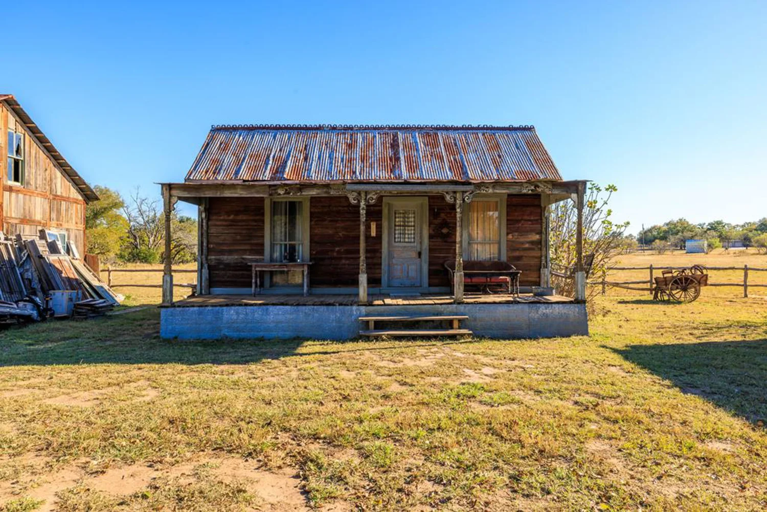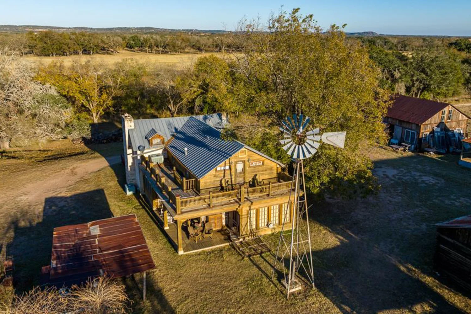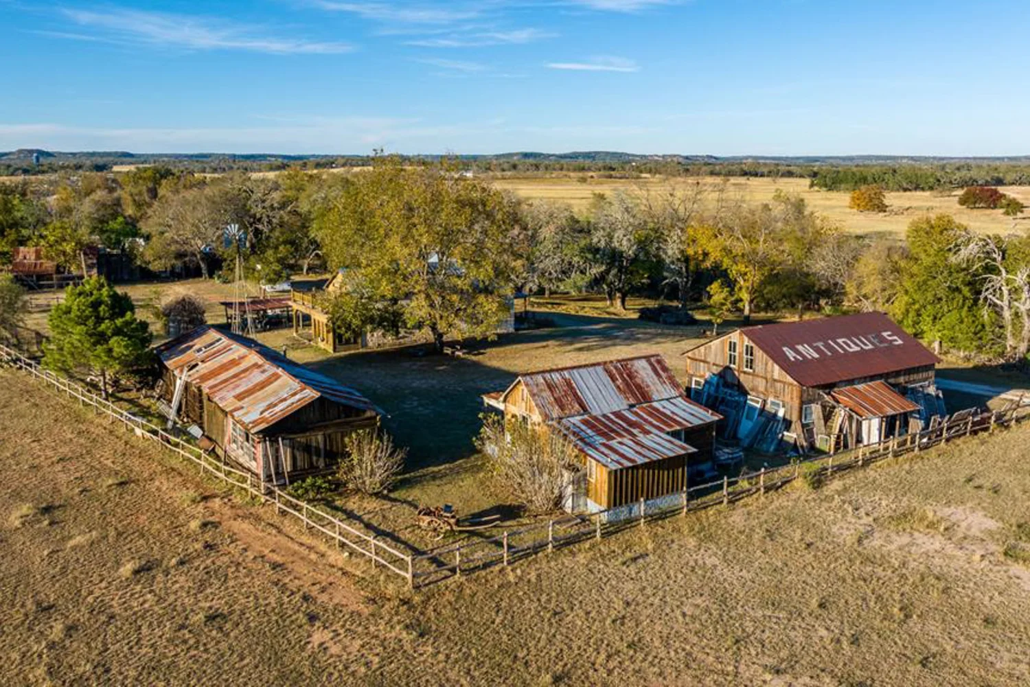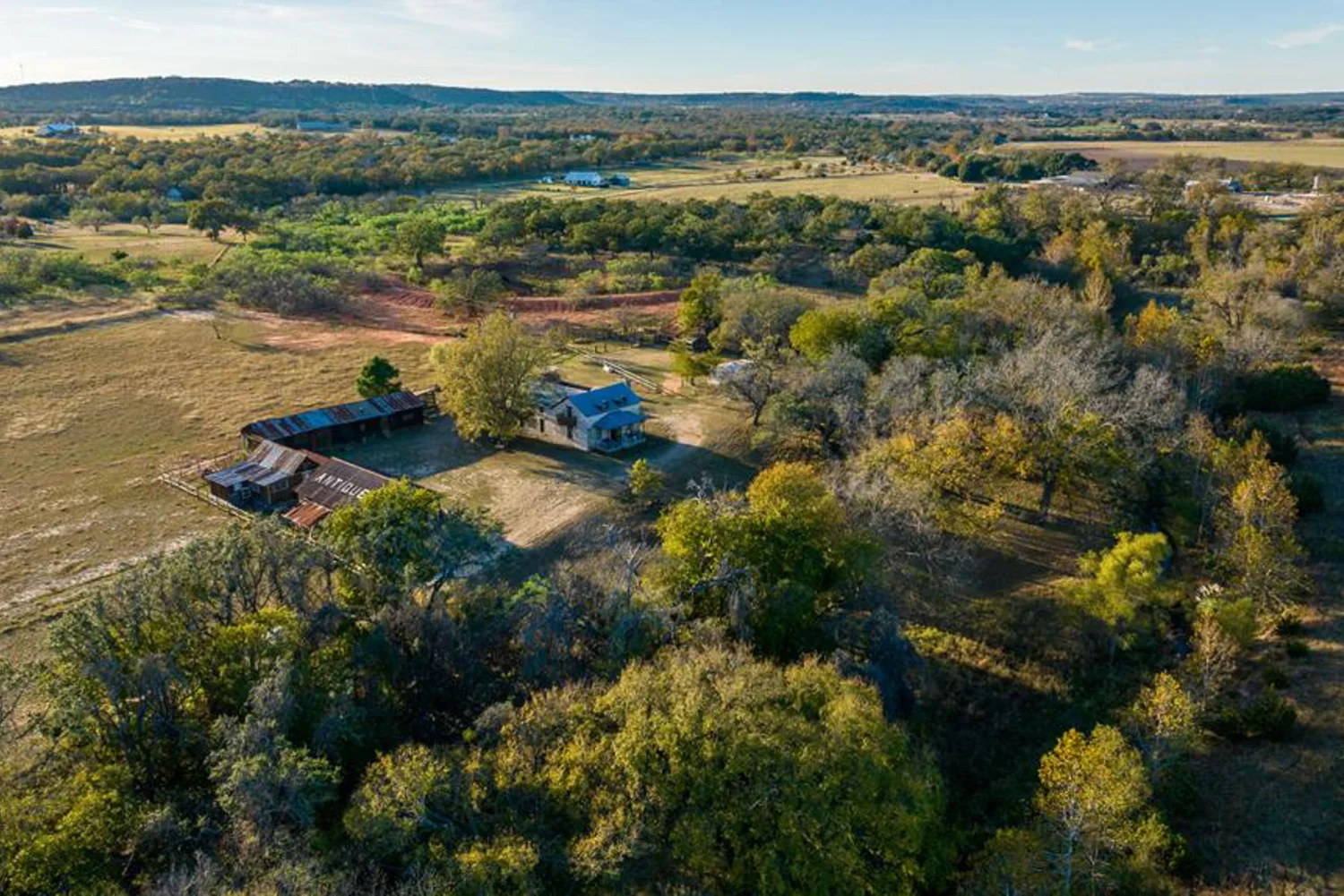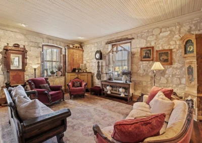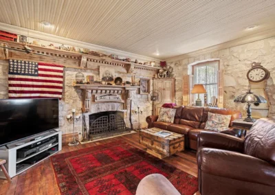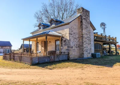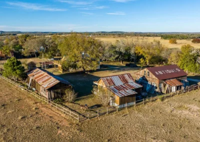 The rock home was originally built in the late 1800’s and is a 3 bedroom, 2 bath with 2 fireplaces and has been remodeled with wood and other antique appointments over the years. The outbuildings consist of a barn shipped from Sweden and reassembled on site, a small 2 bedroom guest cabin that was brought in from San Antonio and an additional wood barn that was brought in from La Grange, TX. There is an additional original feed & storage barn located behind the house.