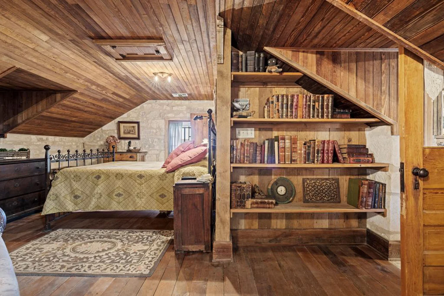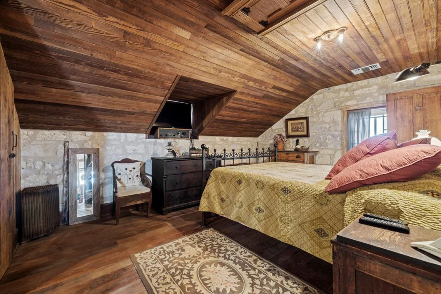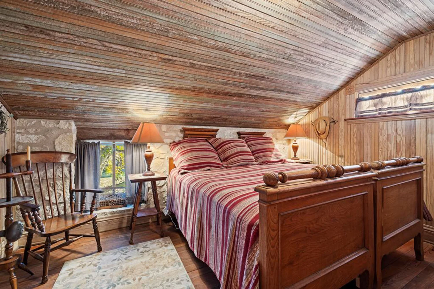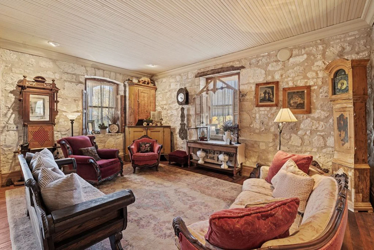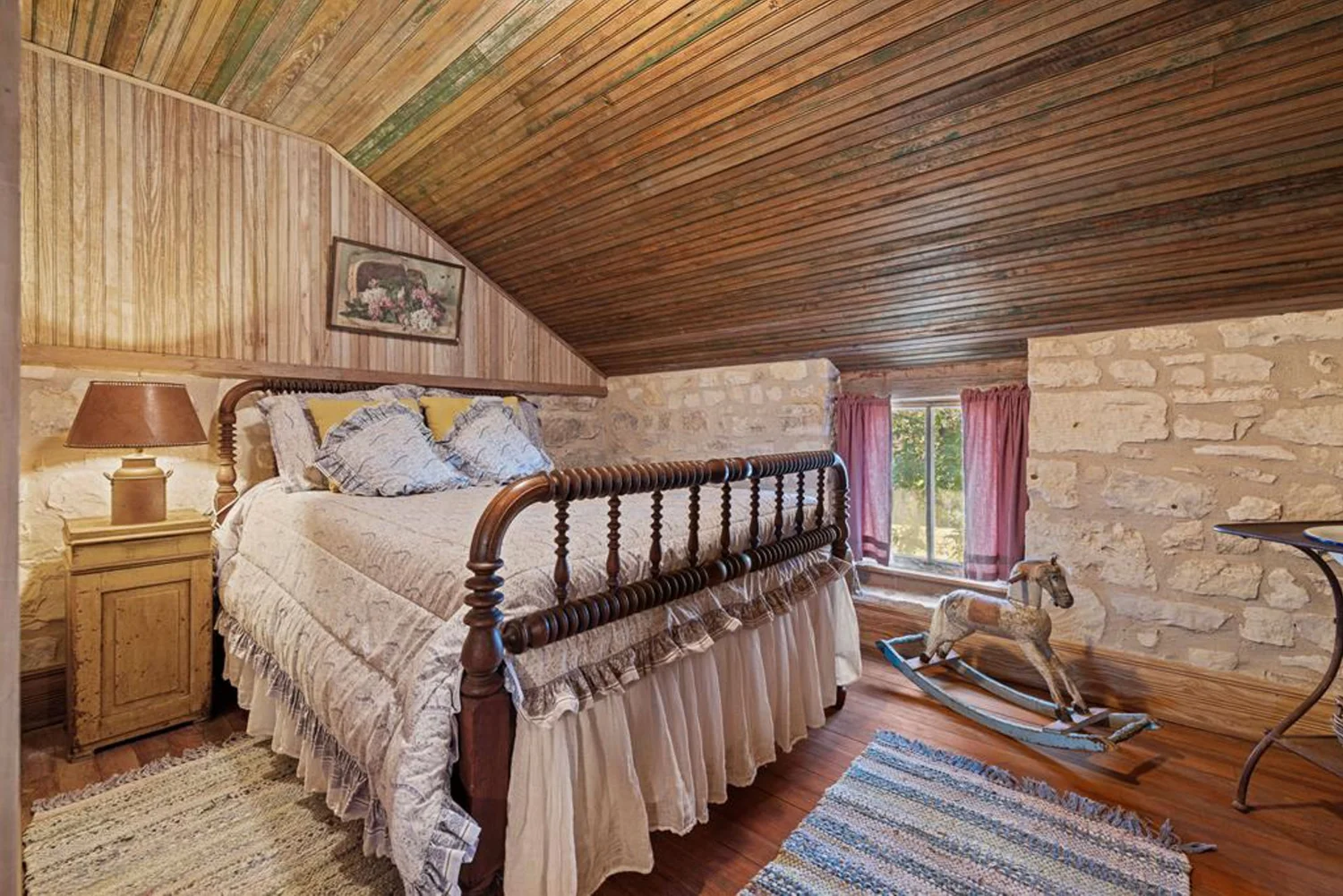 The rock home was originally built in the late 1800’s and is a 3 bedroom, 2 bath with 2 fireplaces and has been remodeled with wood and other antique appointments over the years. The outbuildings consist of a barn shipped from Sweden and reassembled on site, a small 2 bedroom guest cabin that was brought in from San Antonio and an additional wood barn that was brought in from La Grange, TX. There is an additional original feed & storage barn located behind the house.