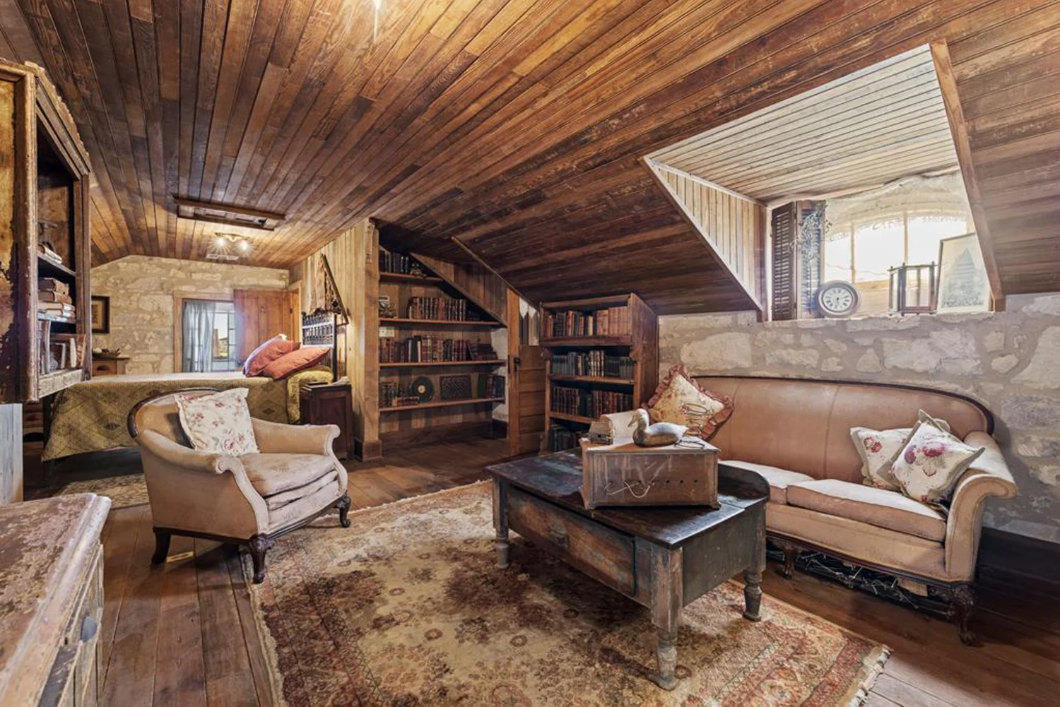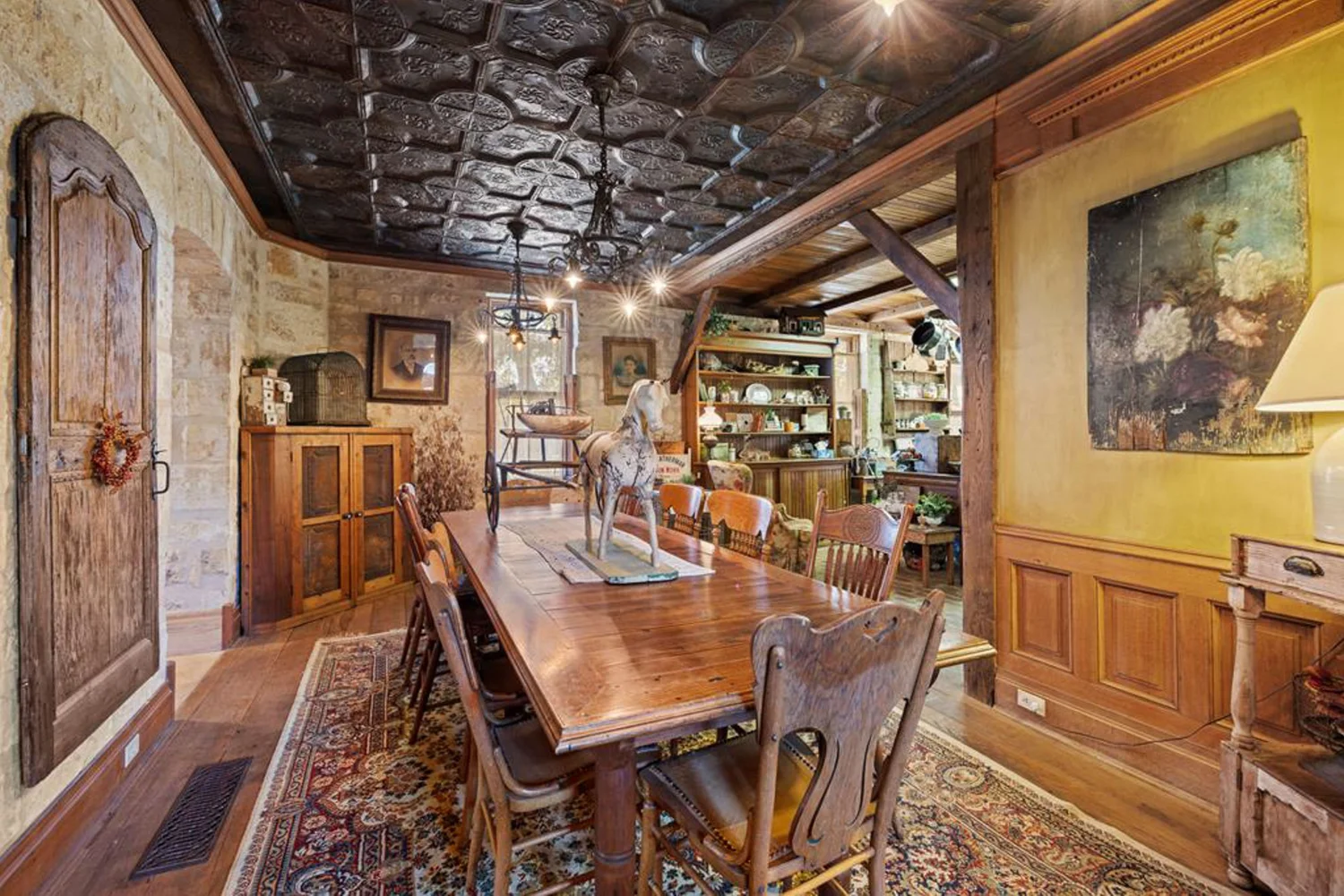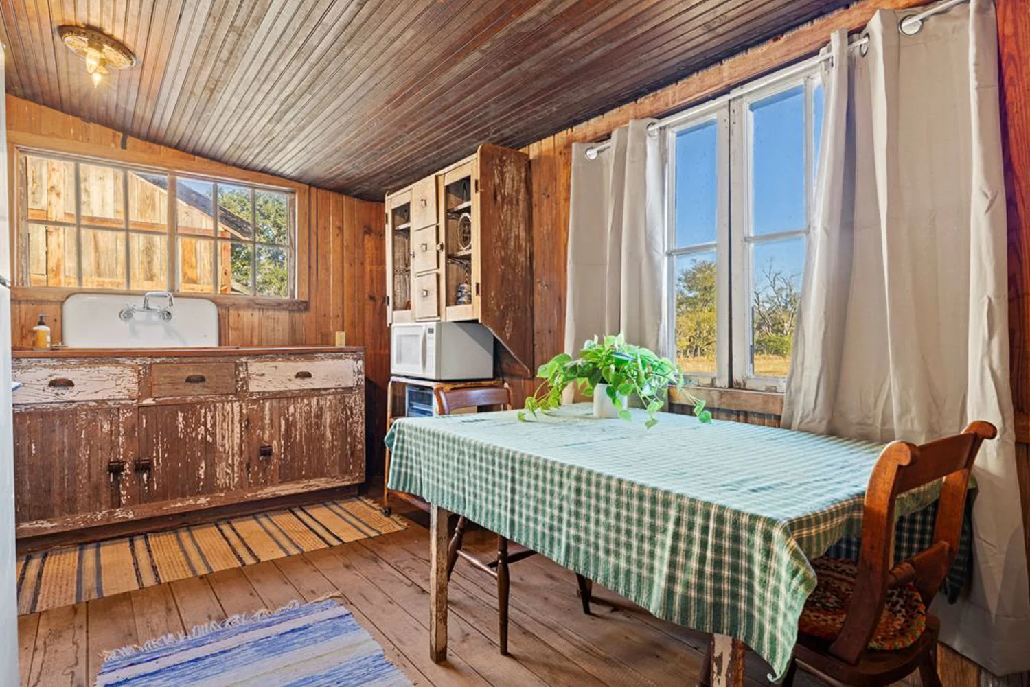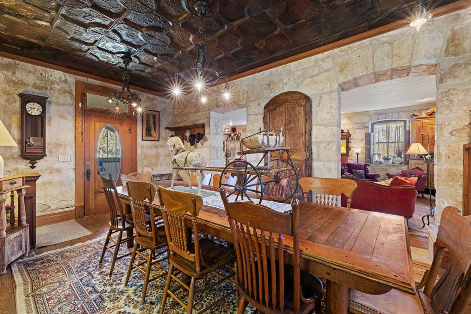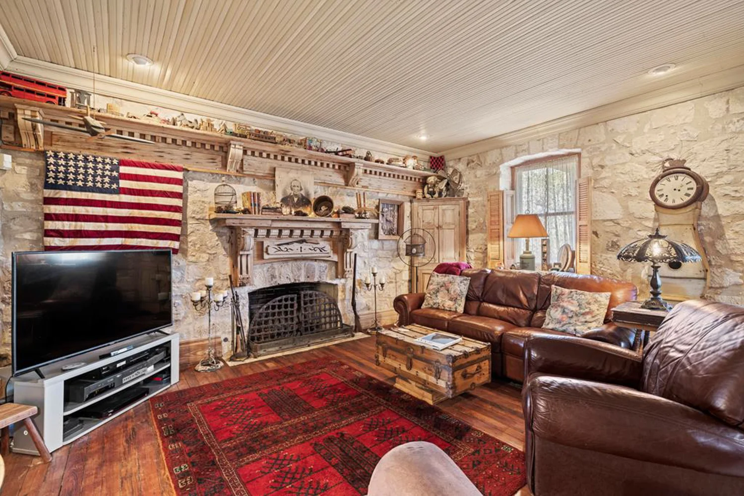 The rock home was originally built in the late 1800’s and is a 3 bedroom, 2 bath with 2 fireplaces and has been remodeled with wood and other antique appointments over the years. The outbuildings consist of a barn shipped from Sweden and reassembled on site, a small 2 bedroom guest cabin that was brought in from San Antonio and an additional wood barn that was brought in from La Grange, TX. There is an additional original feed & storage barn located behind the house.