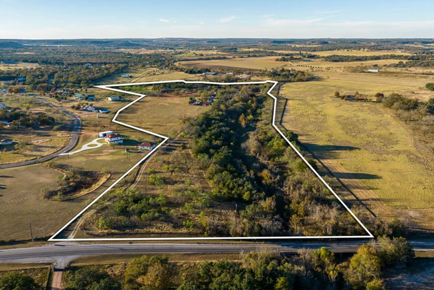 38 +/- unrestricted acres North of Fredericksburg, TX with direct access off HWY 16, flowing Palo Alto Creek and original rock homestead & outbuildings. Just 4 miles (8 minutes) from Fredericksburg, Texas (great restaurants, music venues, wineries, shopping, hospital, grocery stores, full service 24/7 airport).